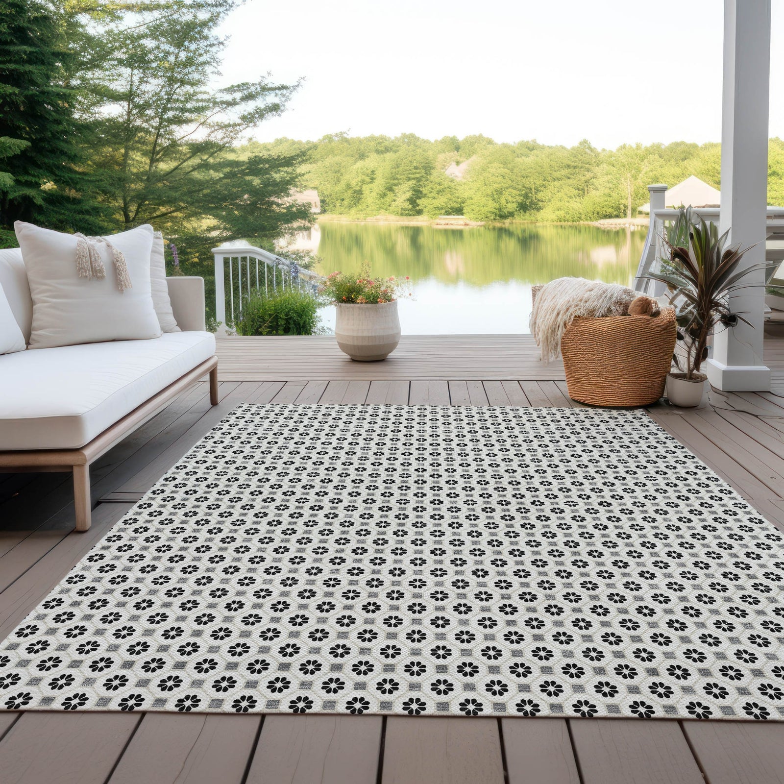 Experience the elegance of a small lattice pattern with floral petals in this transitional rug. The lattice pattern adds a sophisticated and artistic touch to your decor. UV stabilized for both indoor and outdoor use, it features an ultra-thin construction. This machine-washable rug is family and pet-friendly, ensuring easy maintenance and long-lasting charm.