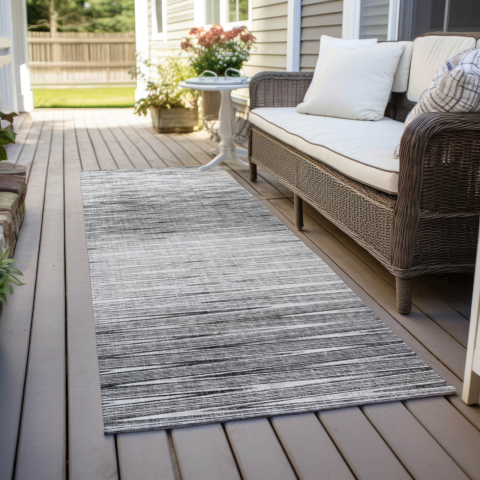 - UV Stabilized For Indoor or Outdoor Use. All rugs exposed to long periods of intense and direct sunlight can experience loss of color over time. Our rugs perform best in covered outdoor areas and uncovered areas with lower hours of direct sunlight.