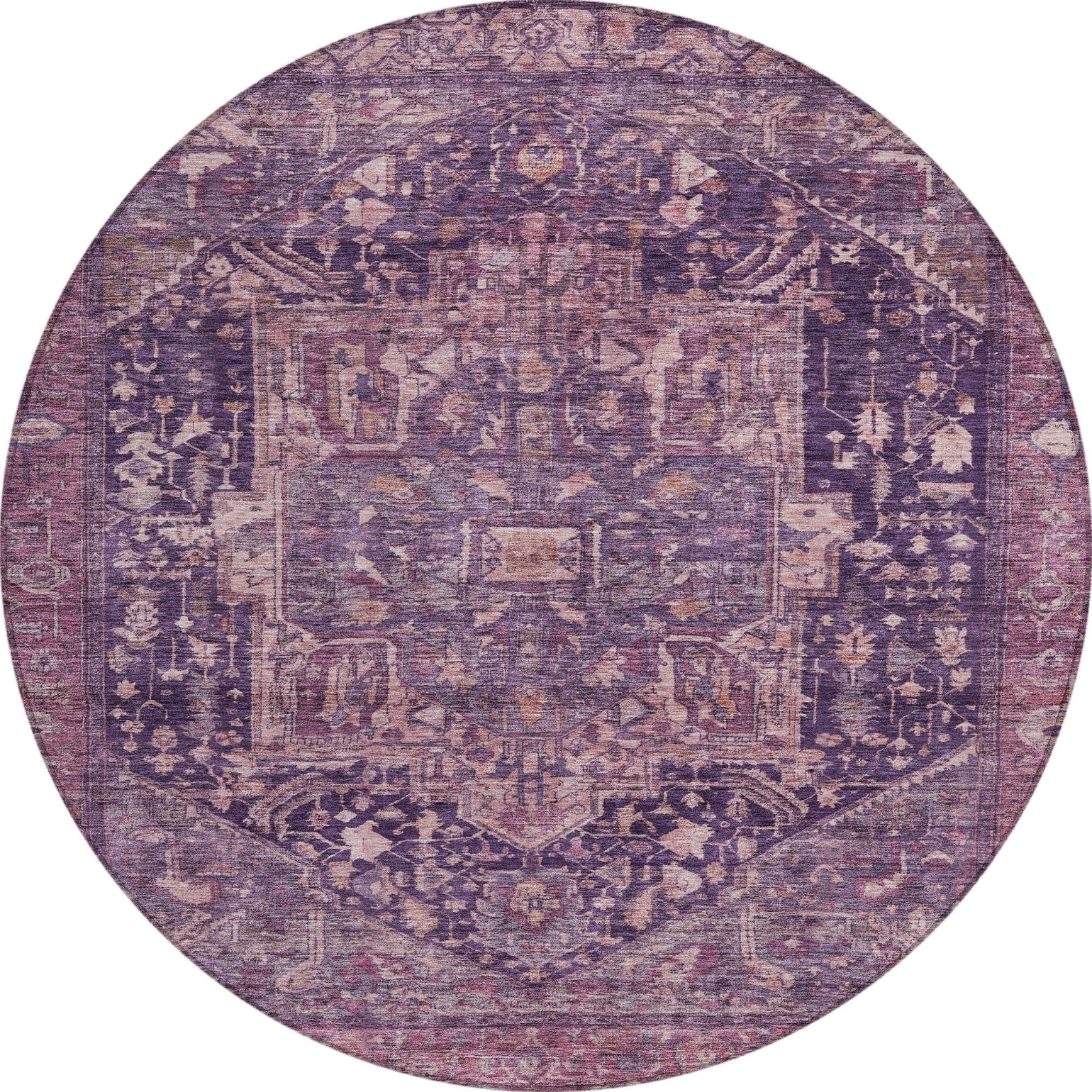 Featuring a formal medallion vintage and distressed pattern, this rug adds a touch of classic elegance to traditional interiors. The medallion design, complemented by distressed details, creates a timeless and charming look. UV stabilized for versatile indoor or outdoor use, it ensures lasting beauty. The ultra-thin build lies flat and is machine-washable for easy upkeep. Ideal for homes with kids and pets, this rug merges style with functionality.