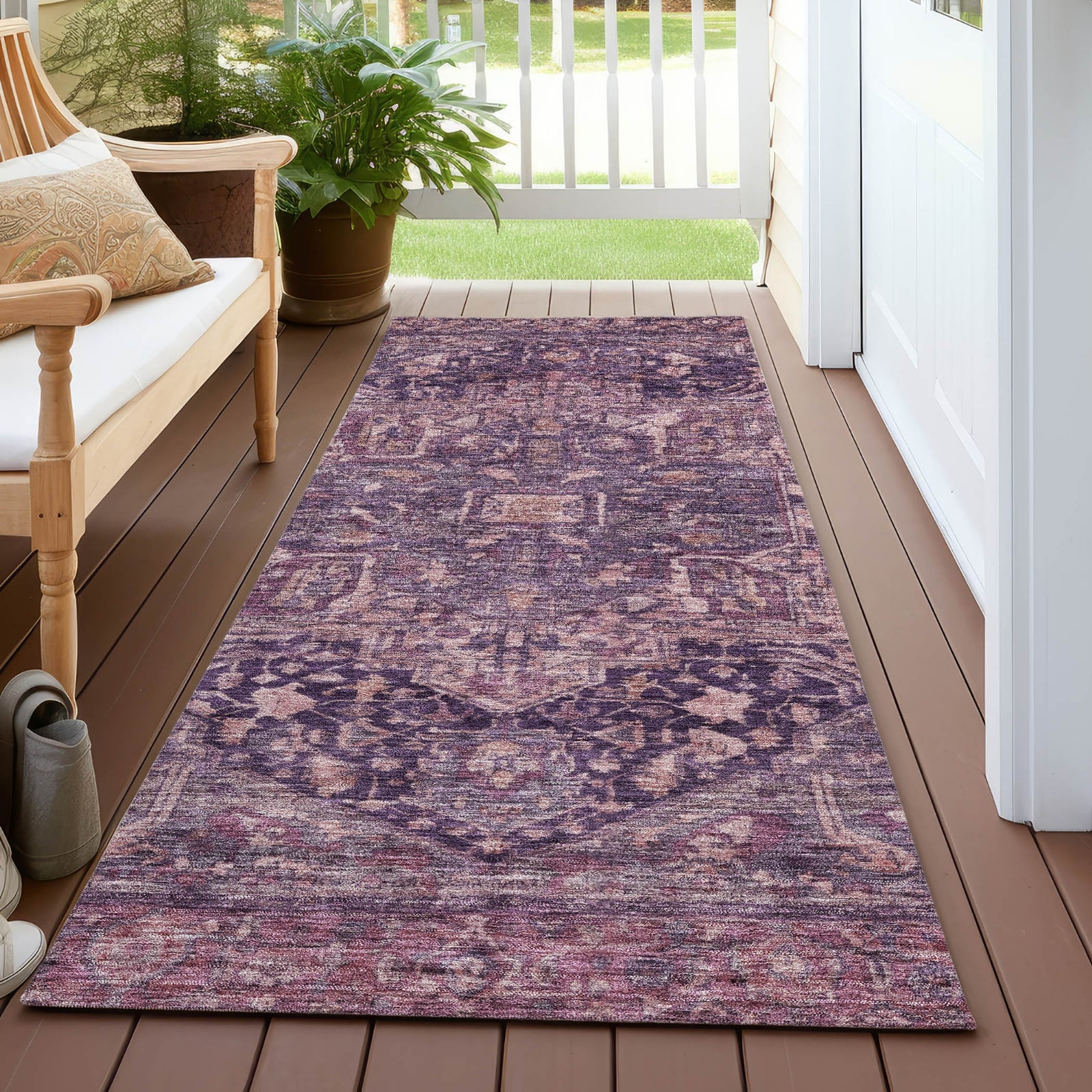 - UV Stabilized For Indoor or Outdoor Use. All rugs exposed to long periods of intense and direct sunlight can experience loss of color over time. Our rugs perform best in covered outdoor areas and uncovered areas with lower hours of direct sunlight.