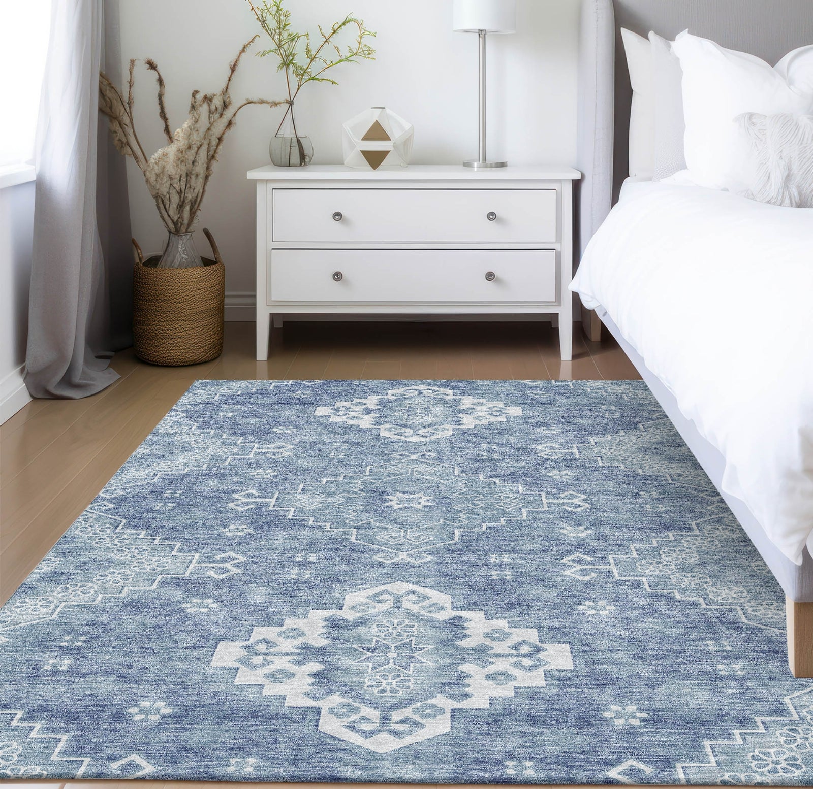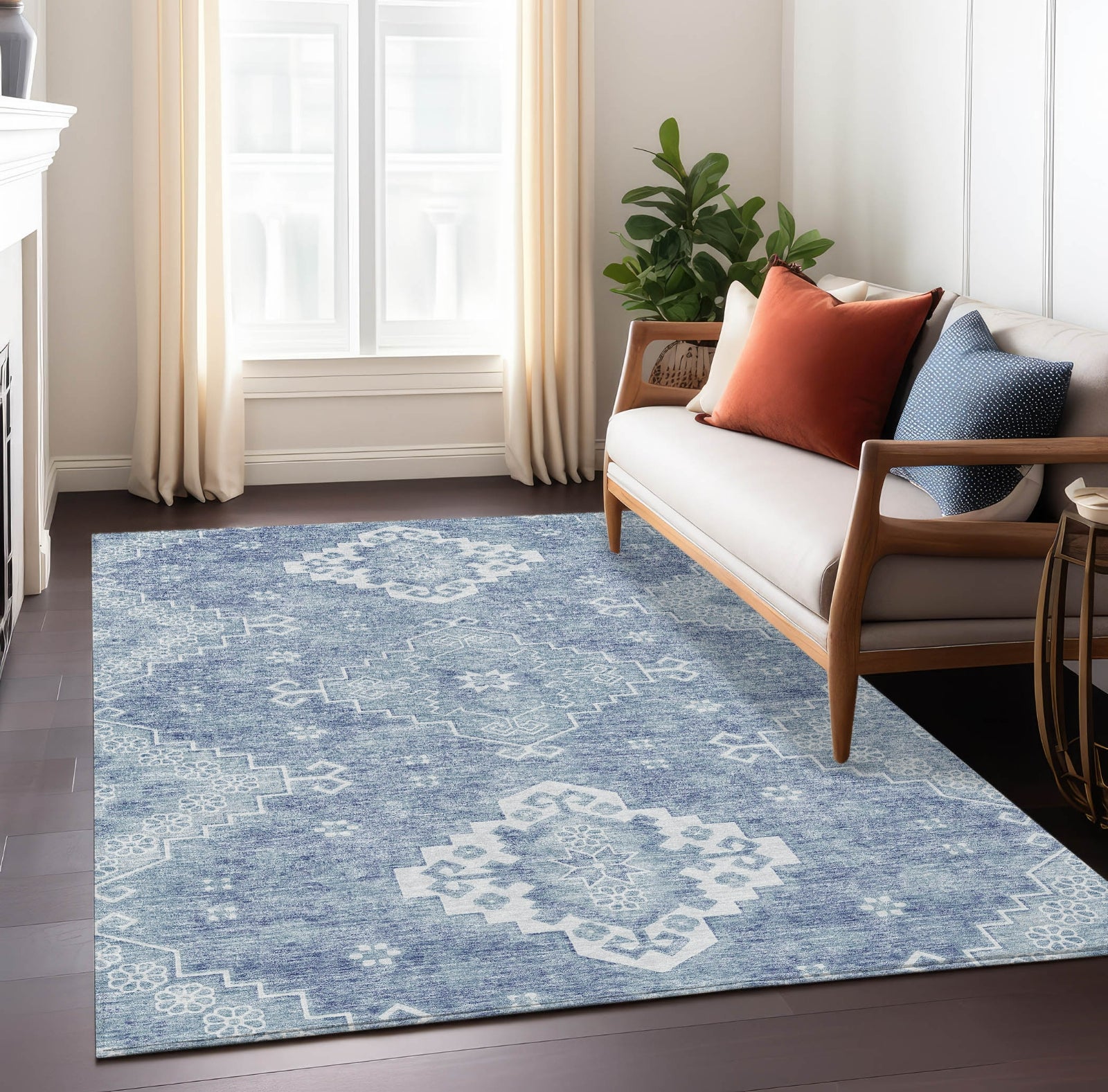 Piper Looms Chantille Medallions ACN847 Blue Machine Washable Area Rug