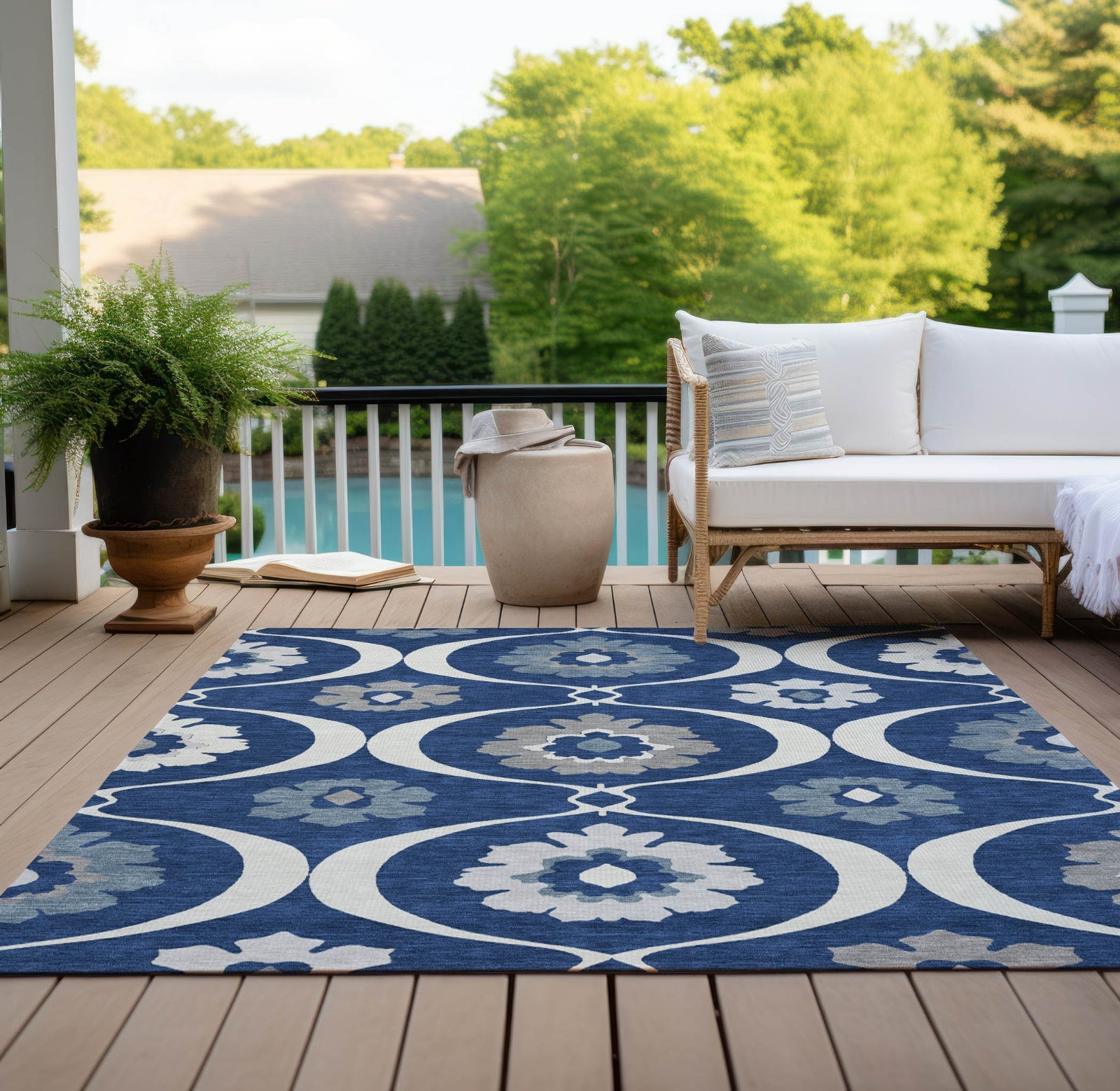Piper Looms Chantille Medallions ACN858 Navy Machine Washable Area Rug