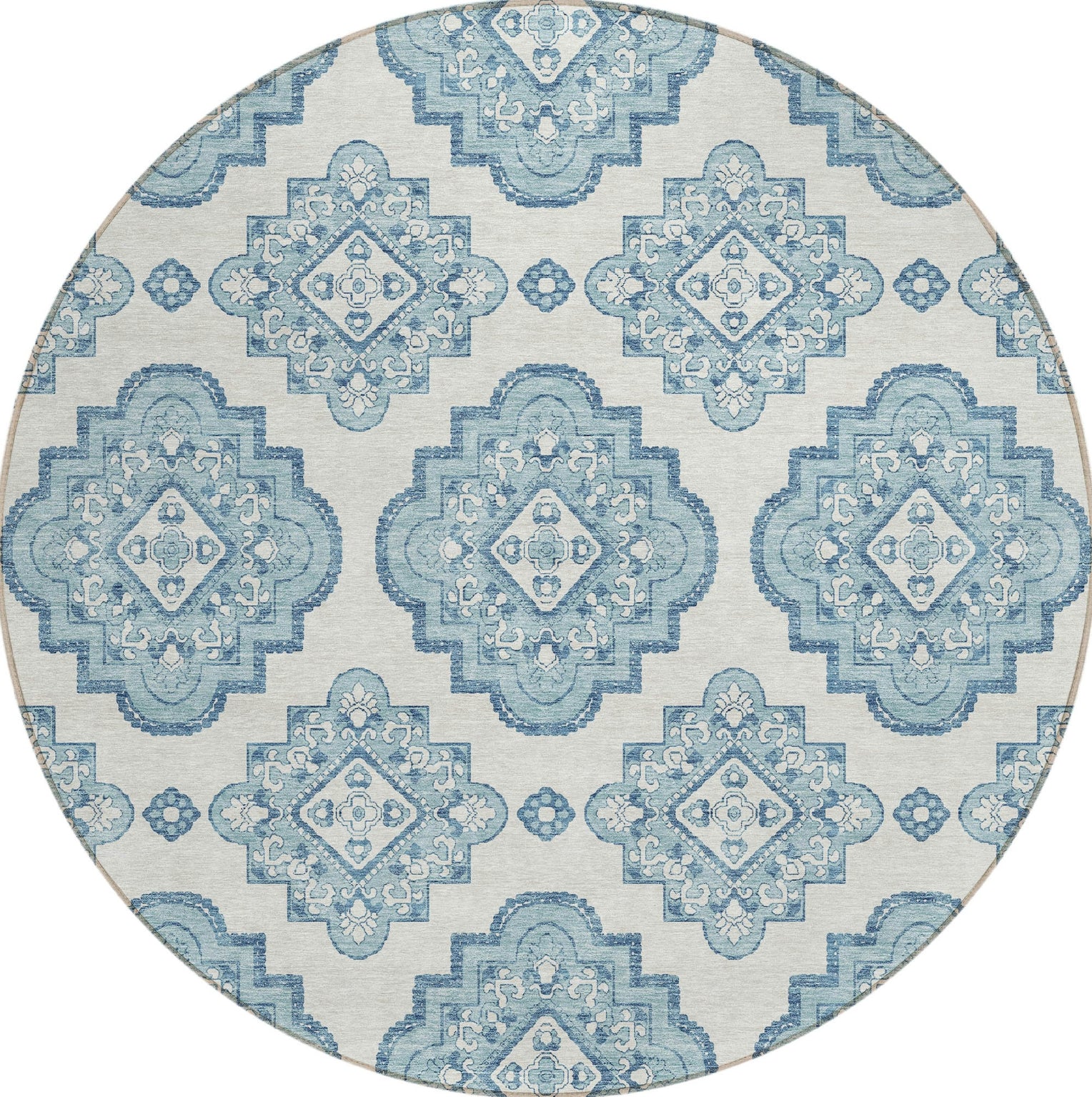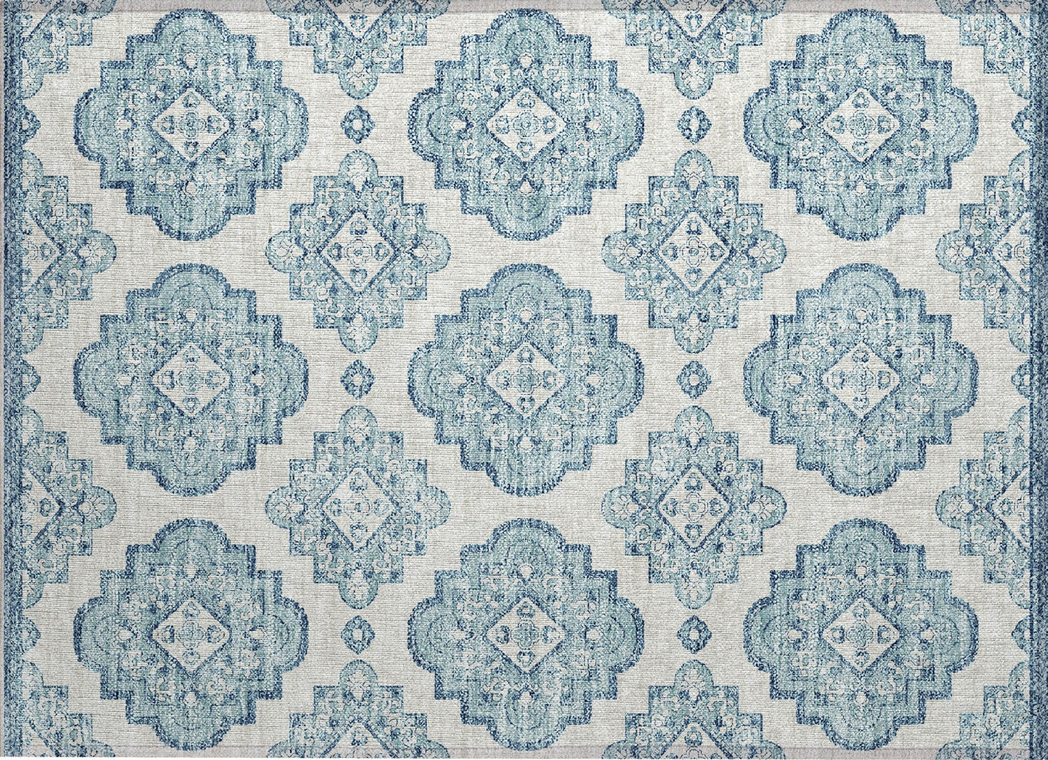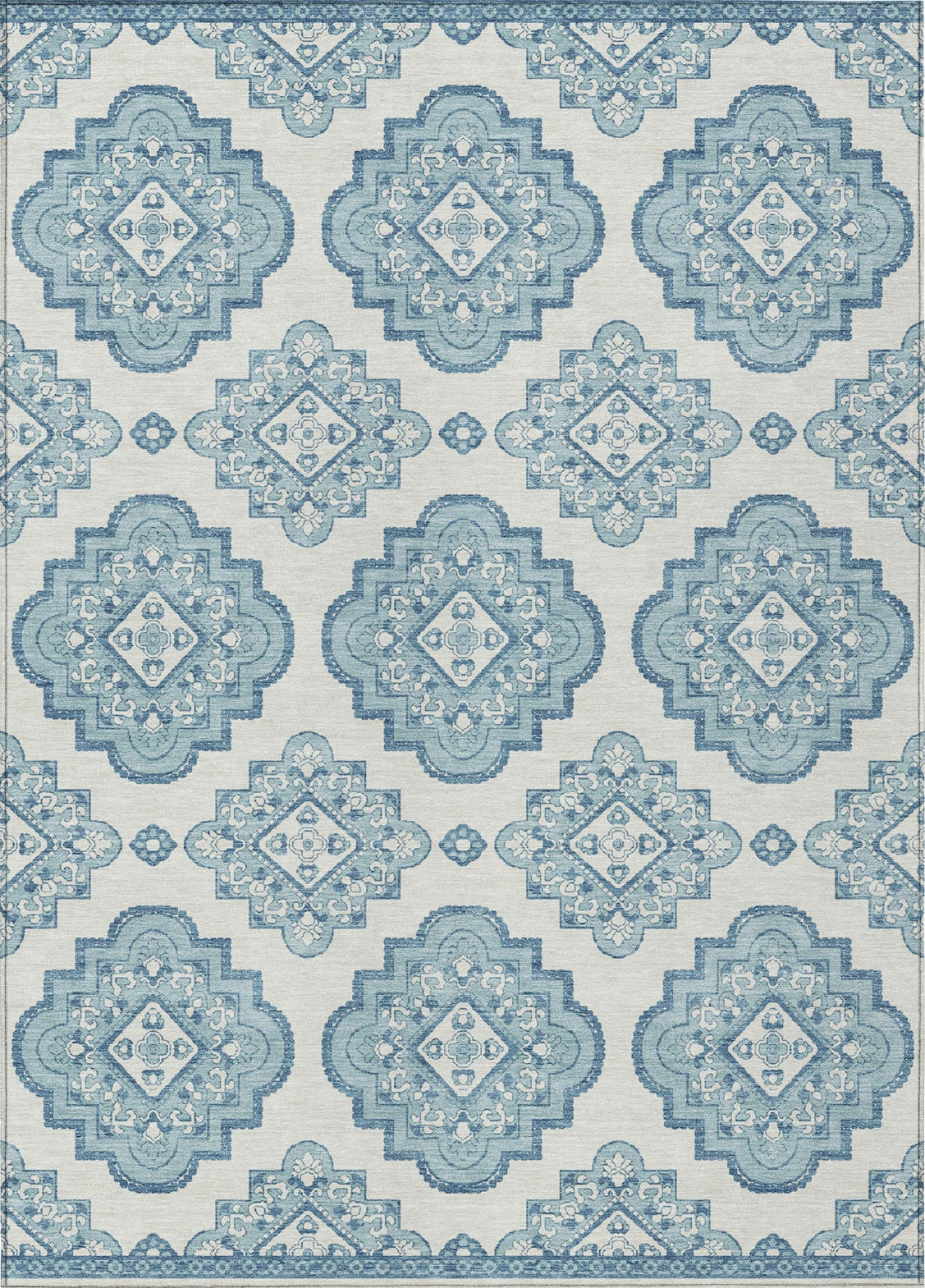 Step into a world of classic charm with our area rug, showcasing formal medallions paired with soft scalloped edges. This transitional rug, with its detailed medallions, is a timeless addition to any home. Designed for versatility, it's UV stabilized for indoor and outdoor use. The ultra-thin design is convenient, and it being machine-washable makes it a perfect fit for households with pets and children.