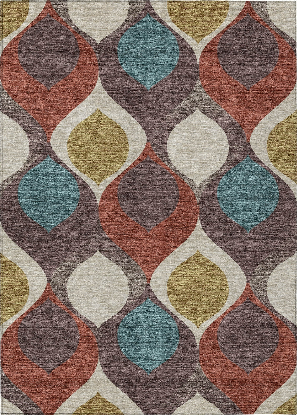 Indulge in the modern sophistication of our rug, adorned with tear dropped motifs that seem to drift across the surface in a mid-century modern design. This transitional style combines the beauty of whimsy with contemporary flair, adding an artistic touch to your home. It's UV stabilized for varied use, ultra-thin for a sleek profile, machine-washable for easy care, and family and pet-friendly, making it an ideal addition to any stylish home.