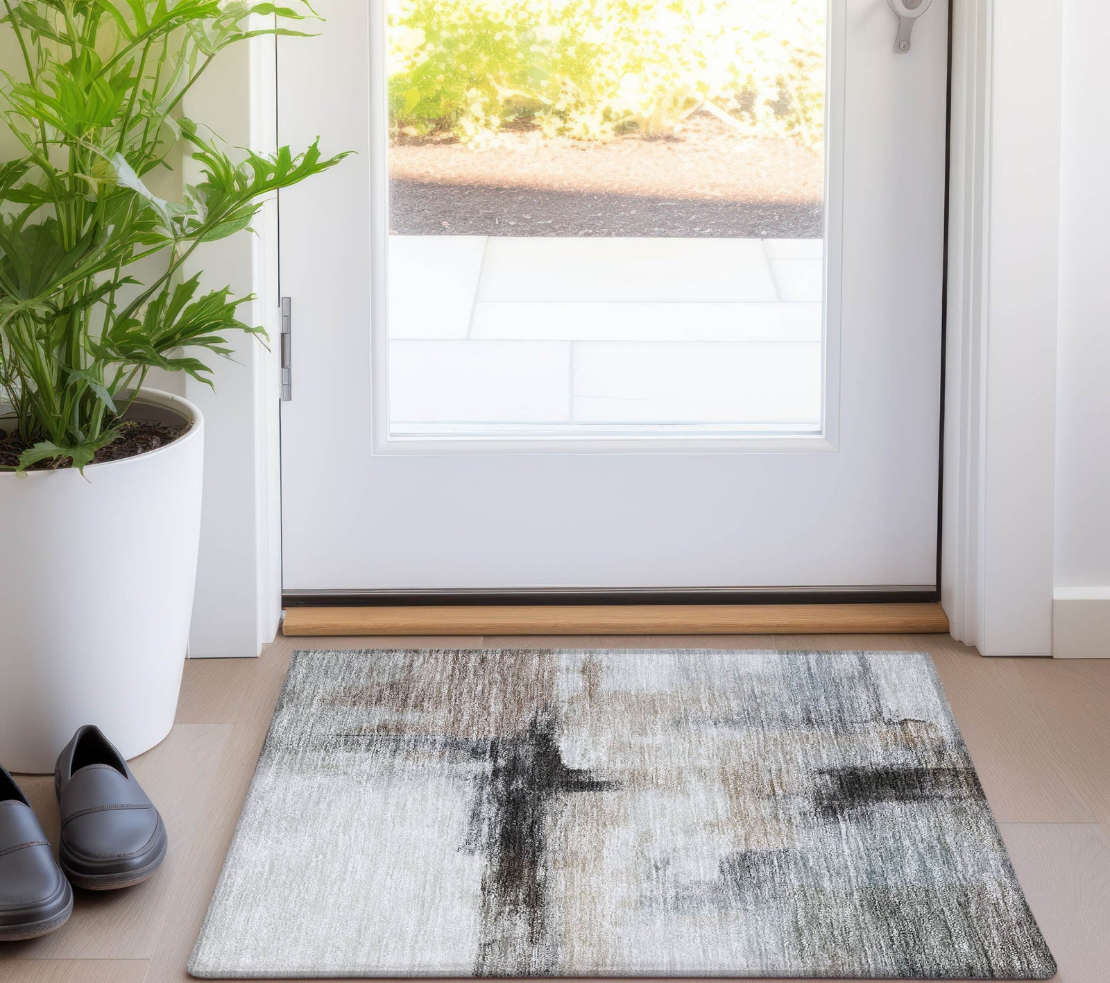 Bring life to your floors with our eye-catching transitional area rug, featuring modern splashes of color in beautifully complementing tones. This rug is an ideal addition to any room, blending well with both contemporary and classic decor styles. It's UV stabilized, making it perfect for use anywhere in your home, including outdoor areas. The ultra-thin design allows for hassle-free placement, and its machine-washable quality makes it a must-have for families and pet owners looking for ease and style.