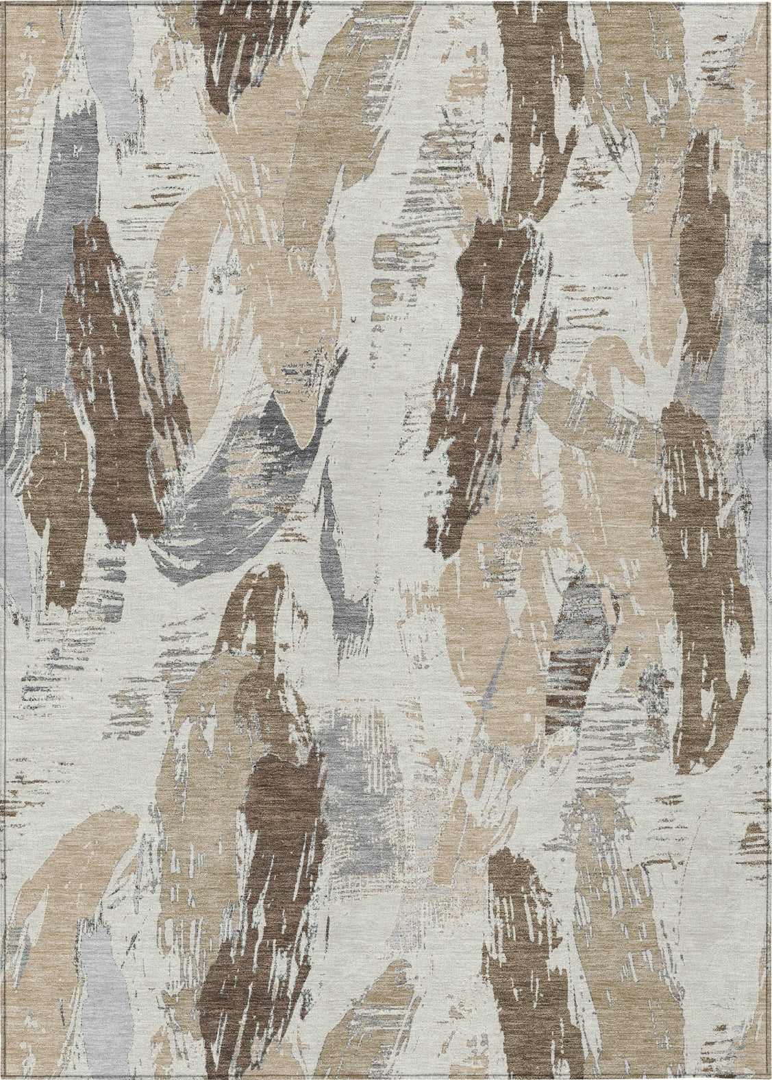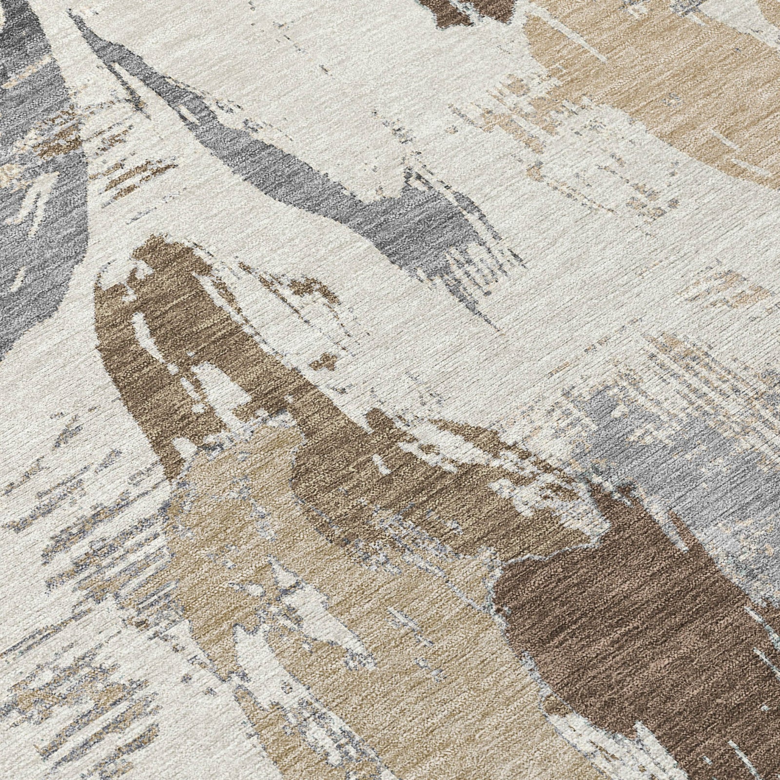Brighten your decor with the sophisticated design of brush-like strokes of paint with an eclectic vibe in this transitional rug. The modern pattern offers a lively and contemporary look, perfect for modern homes. UV stabilized for both indoor and outdoor use, it features ultra-thin construction. This machine-washable rug is family and pet-friendly, providing style and practicality.
