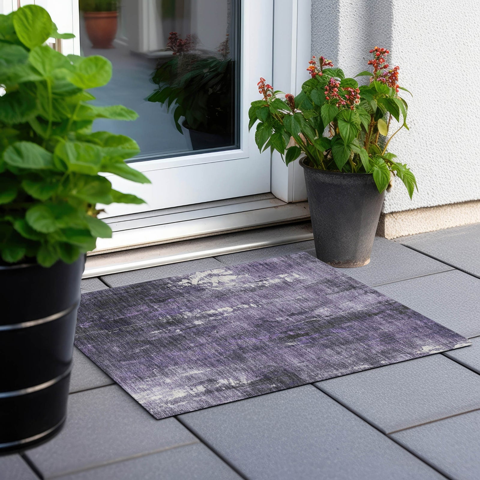 This rug features vertical brush strokes in natural tones, delivering a modern and sleek look. The textured brushstroke pattern creates a sophisticated, contemporary design with a touch of natural warmth. UV stabilized to ensure long-lasting beauty, this rug is suitable for both indoor and outdoor use, preserving its vibrant look through regular wear. Its ultra-thin construction fits seamlessly under furniture, and it's machine-washable for hassle-free maintenance. Perfect for family and pet-friendly spaces, this rug merges style with practical functionality.