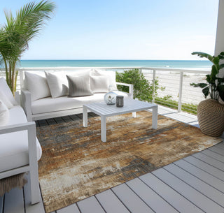 This rug features vertical brush strokes in natural tones, delivering a modern and sleek look. The textured brushstroke pattern creates a sophisticated, contemporary design with a touch of natural warmth. UV stabilized to ensure long-lasting beauty, this rug is suitable for both indoor and outdoor use, preserving its vibrant look through regular wear. Its ultra-thin construction fits seamlessly under furniture, and it's machine-washable for hassle-free maintenance. Perfect for family and pet-friendly spaces, this rug merges style with practical functionality.