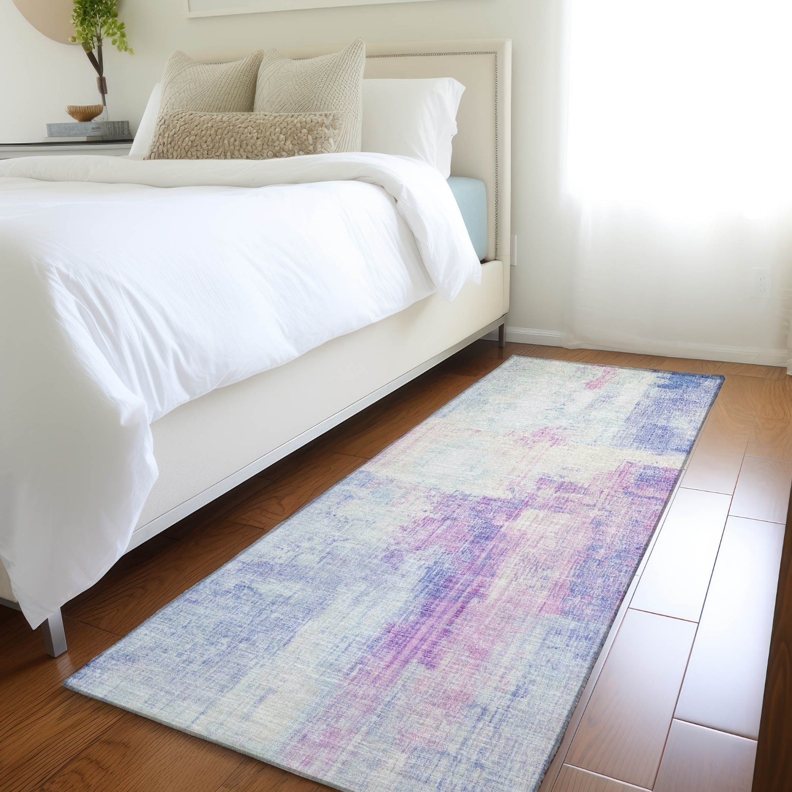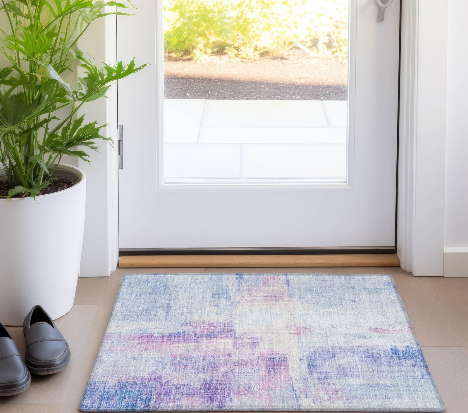 Vertical strokes resembling thin paint lines give this rug a sleek, modern look that adds height and texture to the room. The soft variations in the pattern create a subtle dynamic effect, making it visually appealing without overpowering the space. Its transitional style fits well with both classic and modern decor. This UV-stabilized rug is designed for both indoor and outdoor use, with an ultra-thin construction that makes it easy to manage and maintain. Machine-washable for convenience, it's also family and pet-friendly, ensuring it holds up to daily traffic and activity. Bring effortless style and durability to your space with this versatile rug.