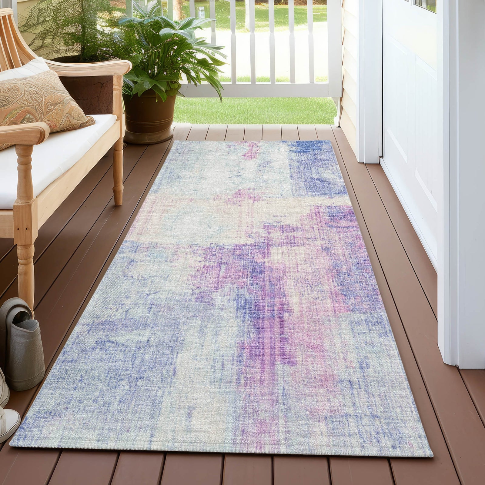 - UV Stabilized For Indoor or Outdoor Use. All rugs exposed to long periods of intense and direct sunlight can experience loss of color over time. Our rugs perform best in covered outdoor areas and uncovered areas with lower hours of direct sunlight.
