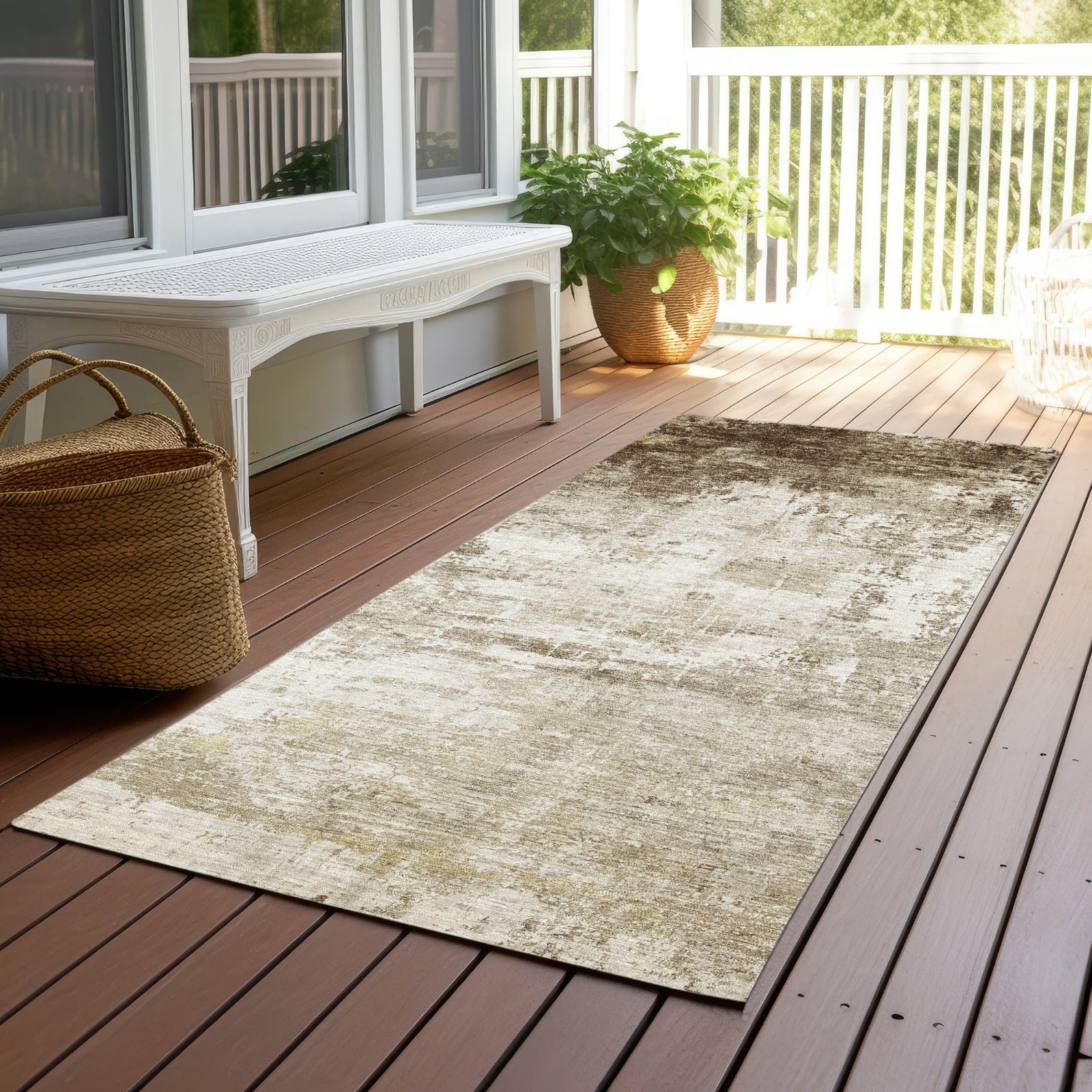 - UV Stabilized For Indoor or Outdoor Use. All rugs exposed to long periods of intense and direct sunlight can experience loss of color over time. Our rugs perform best in covered outdoor areas and uncovered areas with lower hours of direct sunlight.