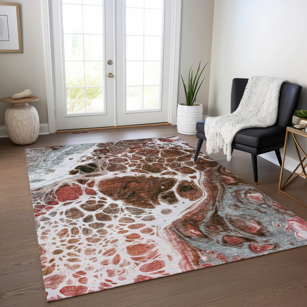 Revel in the elegance of our area rug, infused with the fluid magic of alcohol ink and enriched with diverse tonal colors. Perfect for those who value both modern and transitional designs, it's a stunner in every sense. The rug's UV stabilization makes it a versatile choice for any setting, inside or alfresco. Its svelte composition is augmented with an integrated non-skid backing, offering practicality. And for those vibrant households, its machine-washable, pet-friendly features come as a boon.