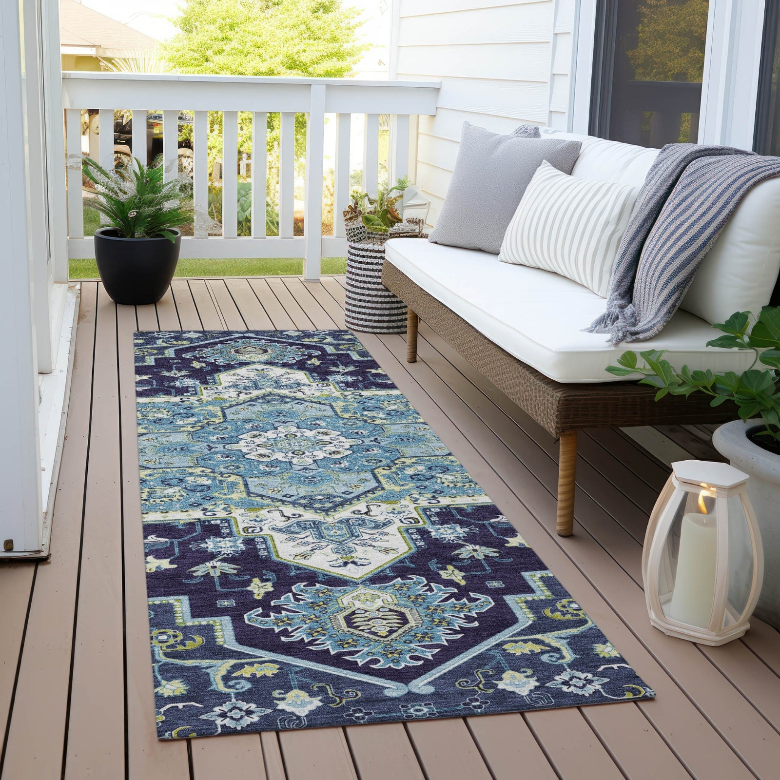 Piper Looms Chantille Oriental ACN1036 Navy Machine Washable Area Rug
