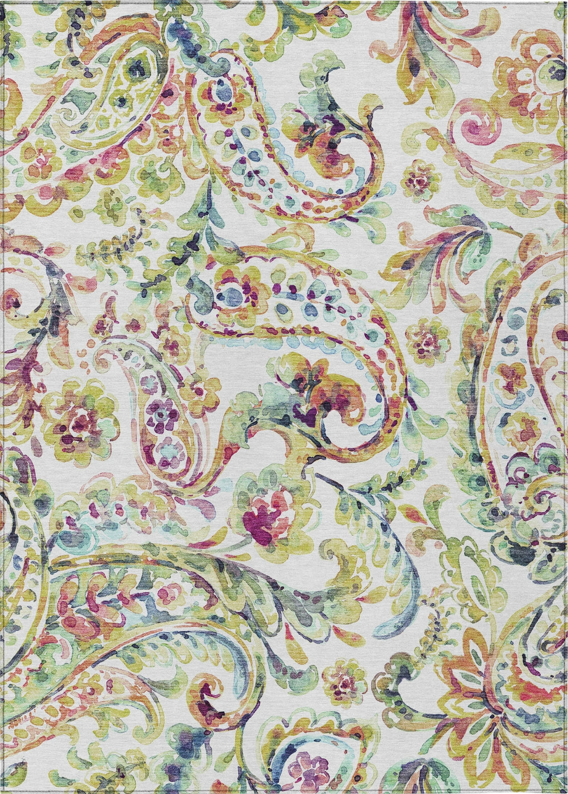 Piper Looms Chantille Paisley ACN834 Ivory Machine Washable Area Rug