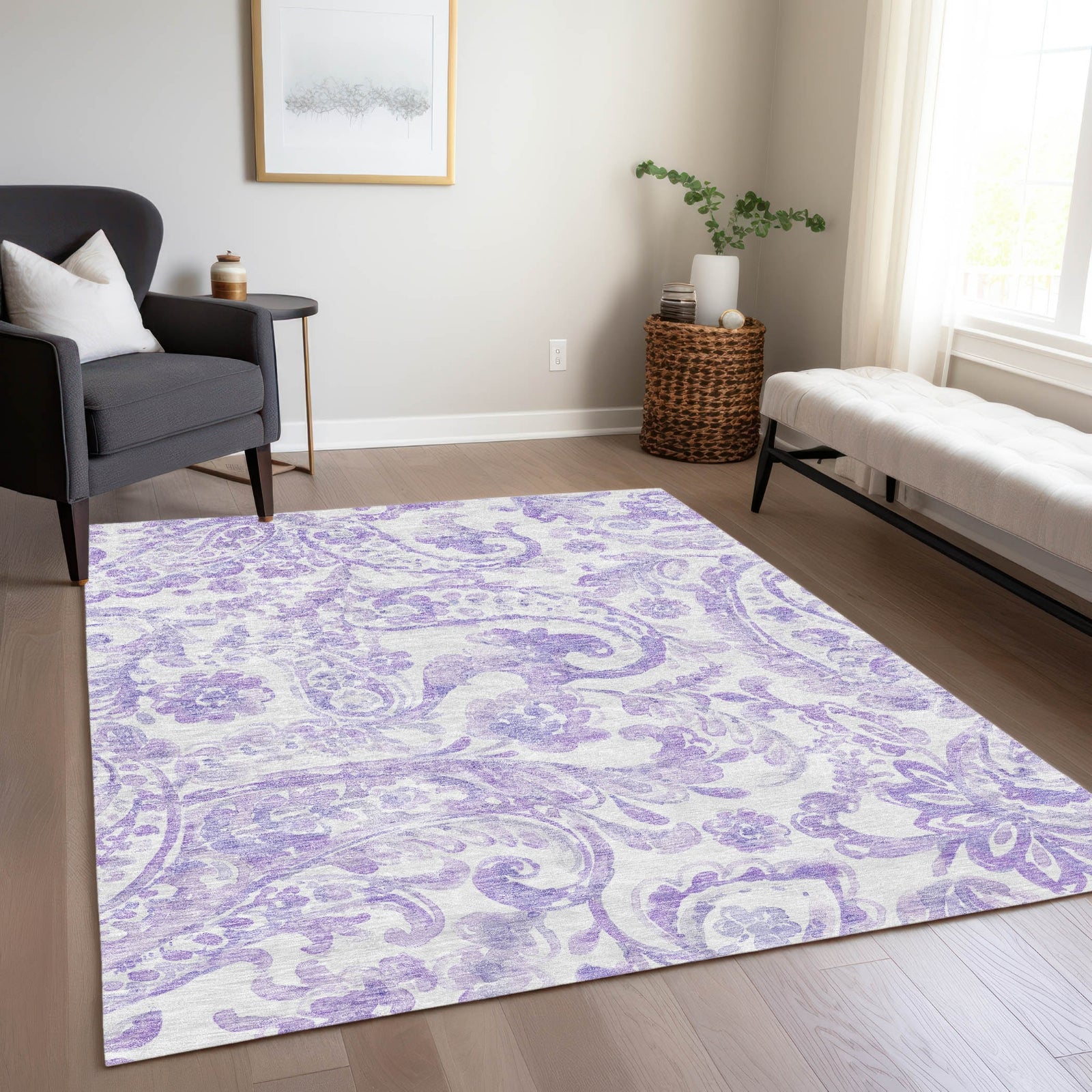 Piper Looms Chantille Paisley ACN835 Lavender Machine Washable Area Rug