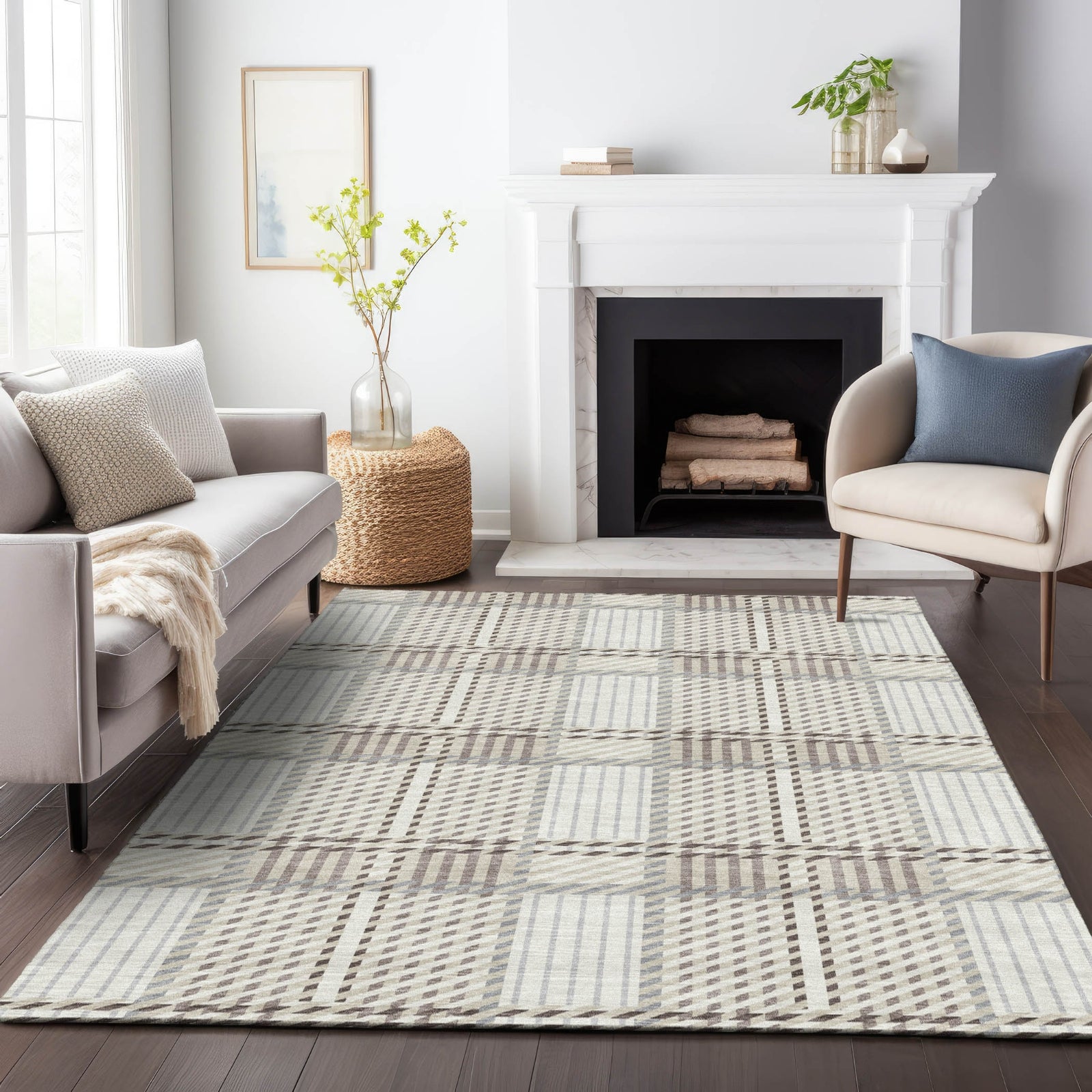 Piper Looms Chantille Plaid ACN1000 Ivory Machine Washable Area Rug