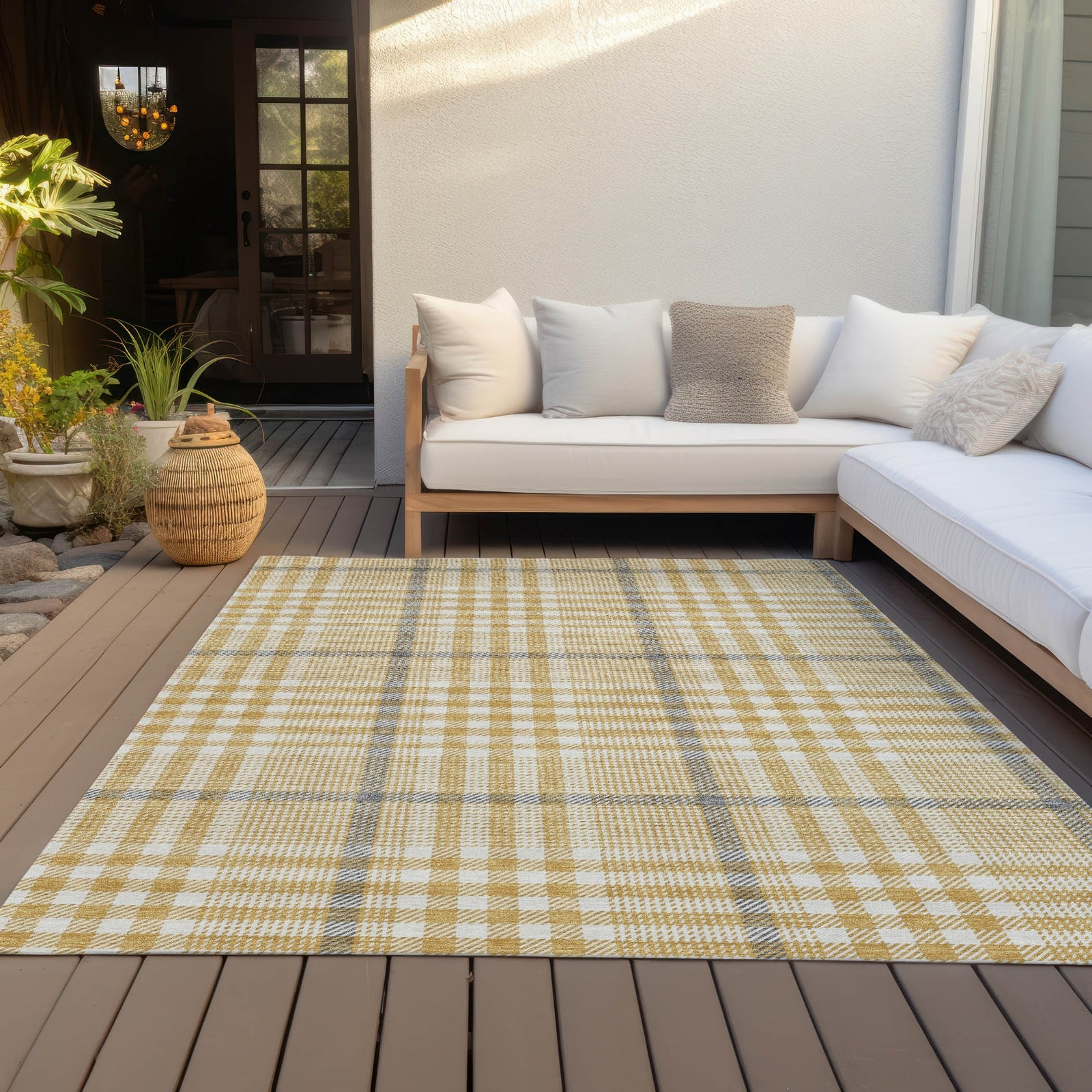 Piper Looms Chantille Plaid ACN1054 Gold Machine Washable Area Rug