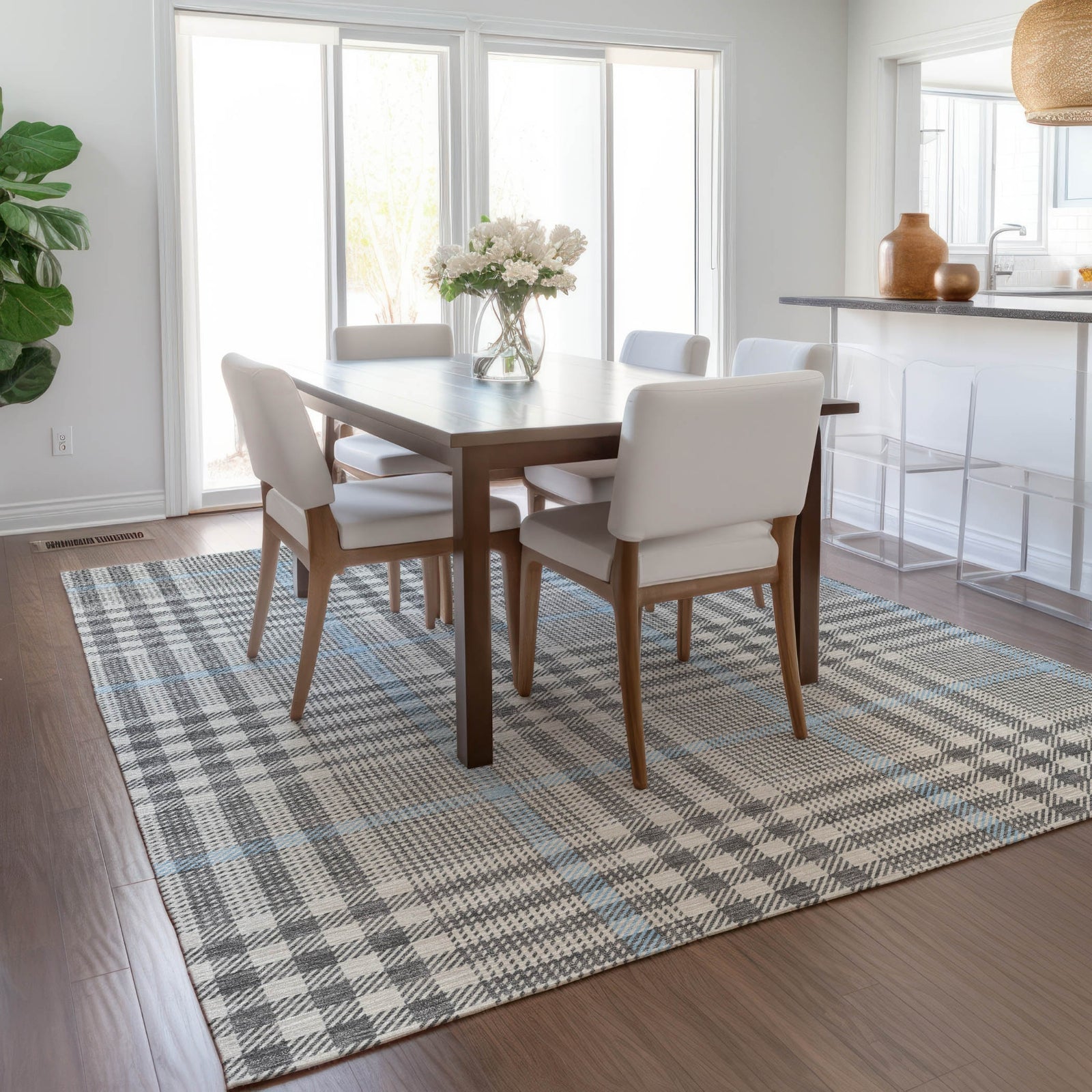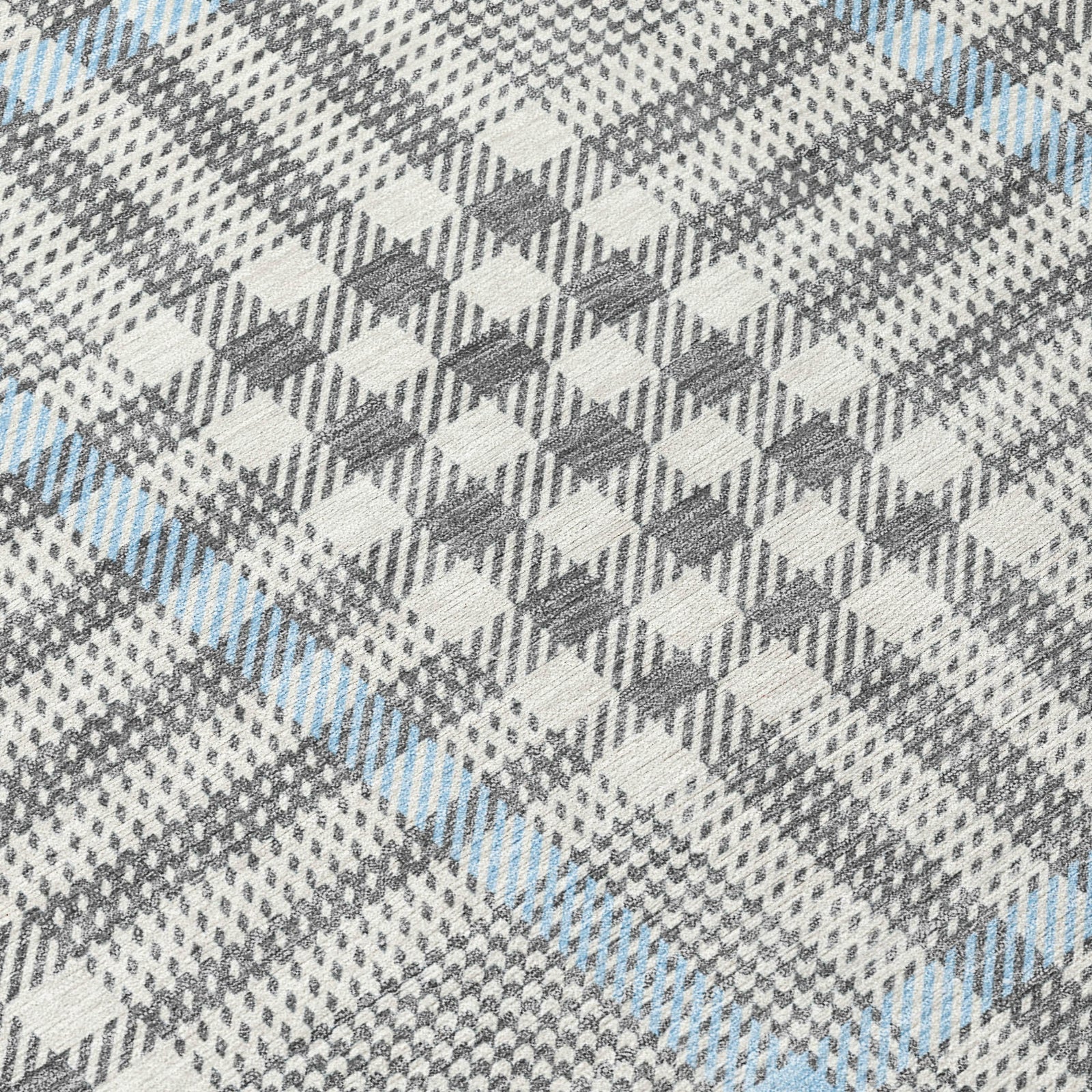 Our area rug captures the essence of transitional style with its intricate plaid pattern and multi-sized checkerboard, offering a distinctive look that complements any interior. The varied checkerboard sizes introduce a playful yet elegant element to your decor. This rug is UV stabilized for enduring beauty, ultra-thin for convenience, and machine-washable for practical care. With its family and pet-friendly design, it provides durability and style in one package.