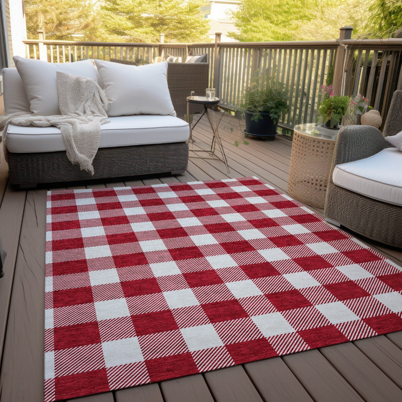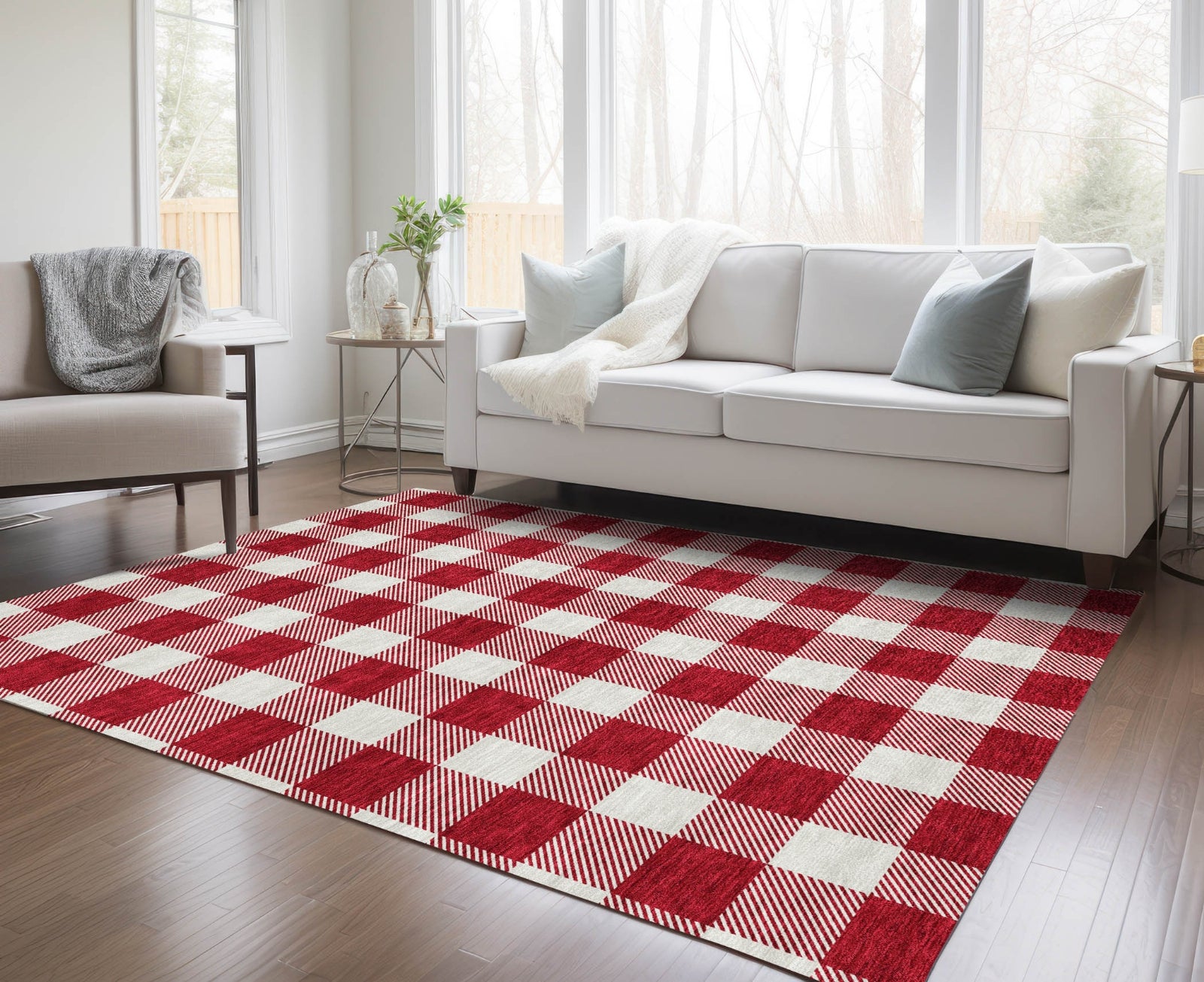 Piper Looms Chantille Plaid ACN923 Red Machine Washable Area Rug
