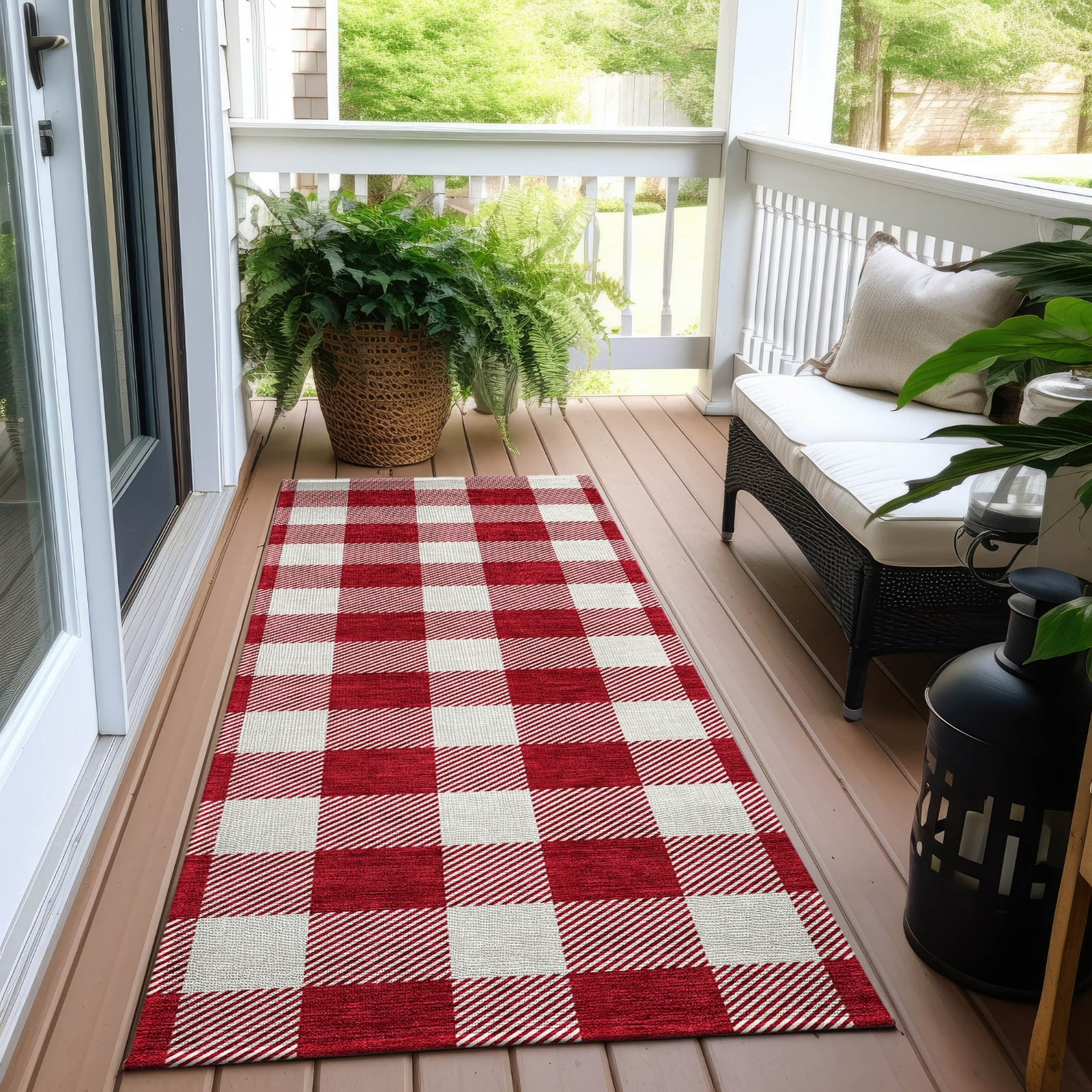 Revitalize your home's interior with our stylish area rug, adorned with a two-tone plaid pattern that creates a captivating transitional design. It's UV stabilized, perfect for both indoor and outdoor settings. The ultra-thin construction and machine-washable capability make it an essential item for homes with pets and children.