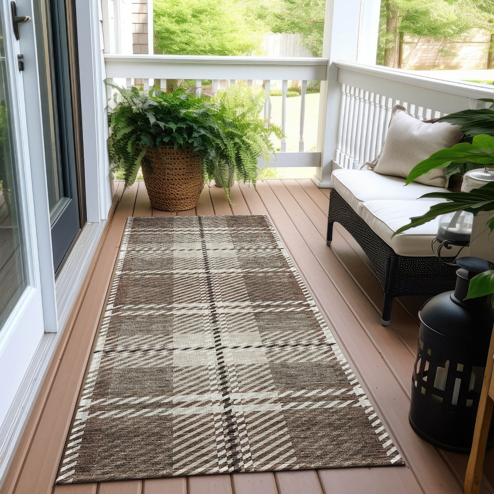 Piper Looms Chantille Plaid ACN935 Brown Machine Washable Area Rug