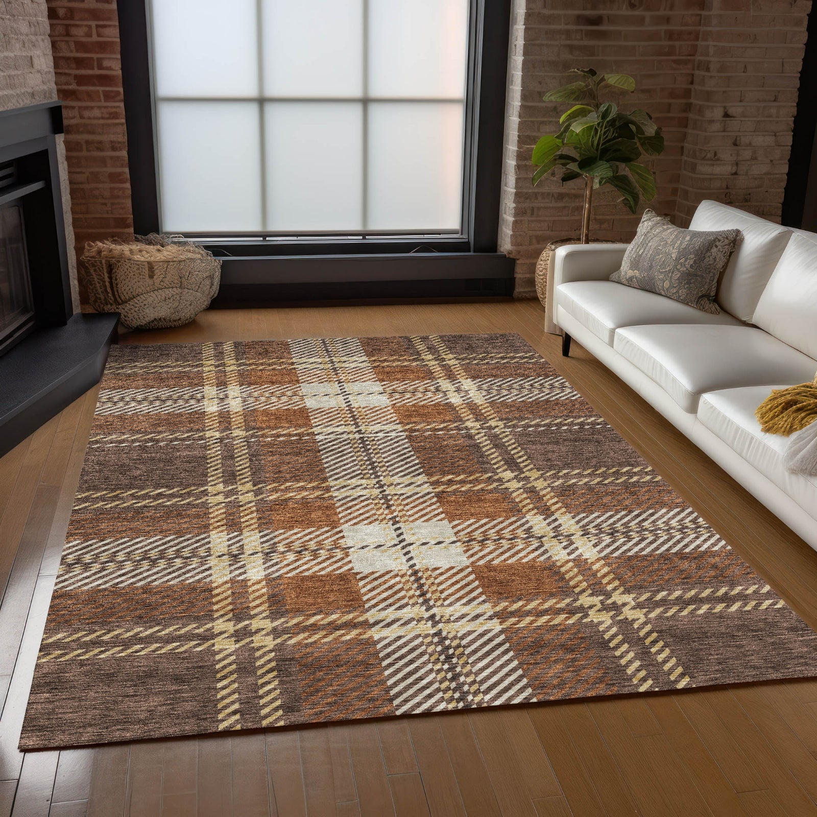Piper Looms Chantille Plaid ACN935 Chocolate Machine Washable Area Rug