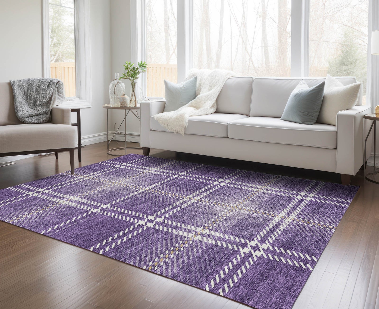 Piper Looms Chantille Plaid ACN935 Purple Machine Washable Area Rug