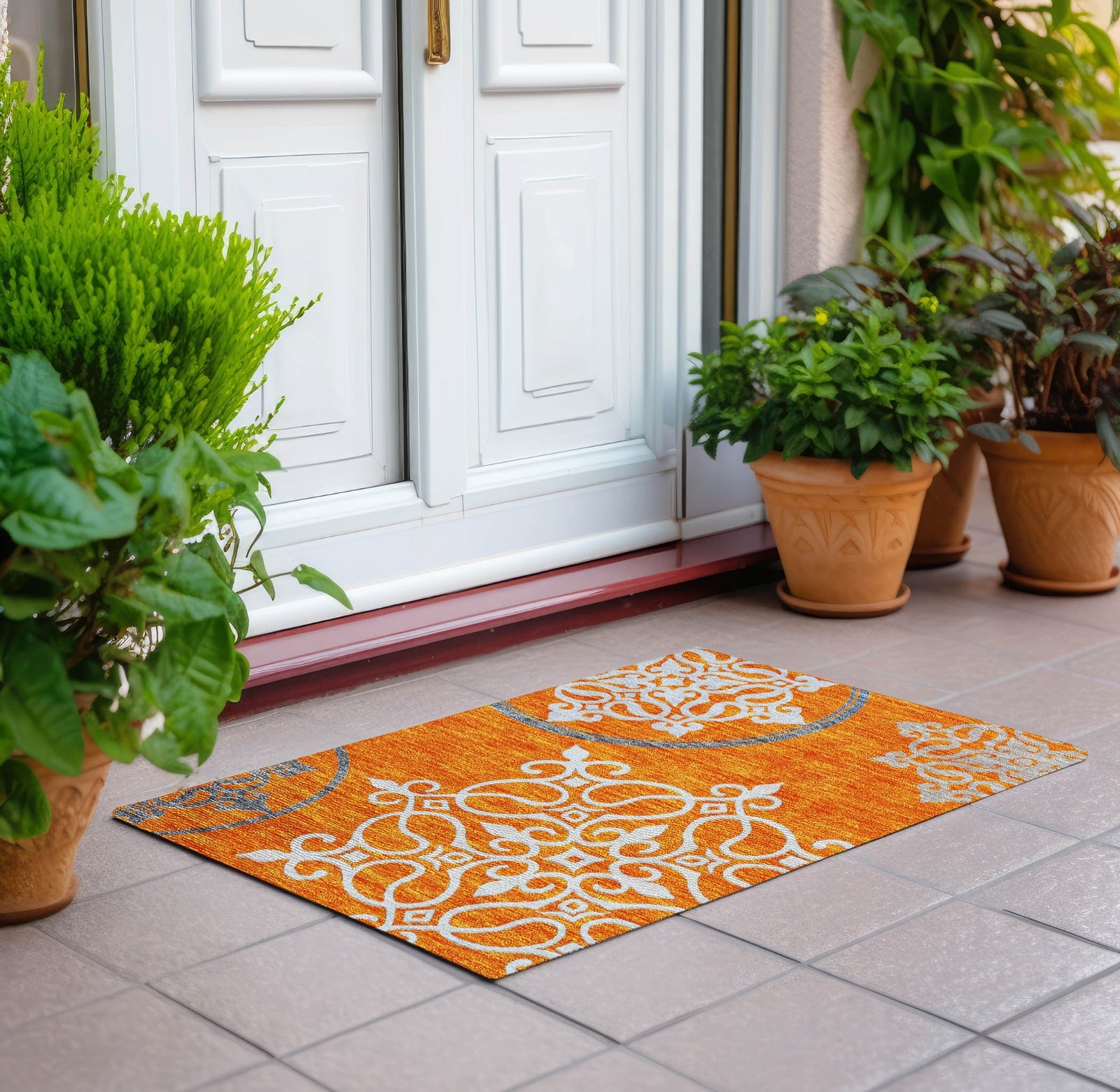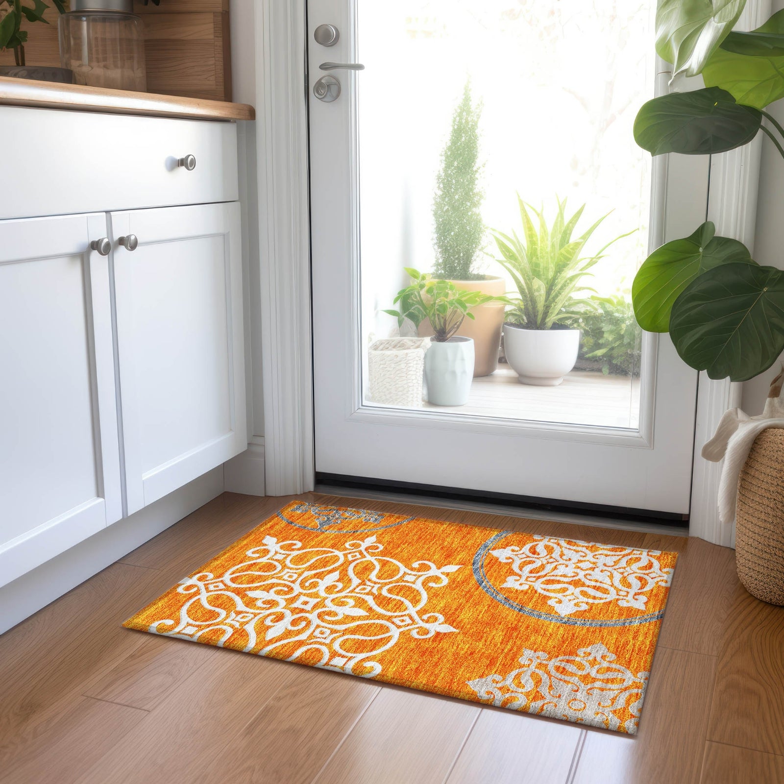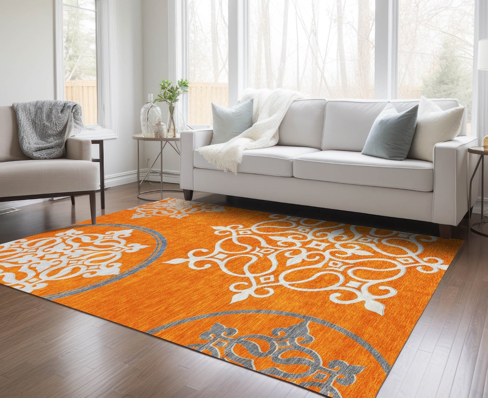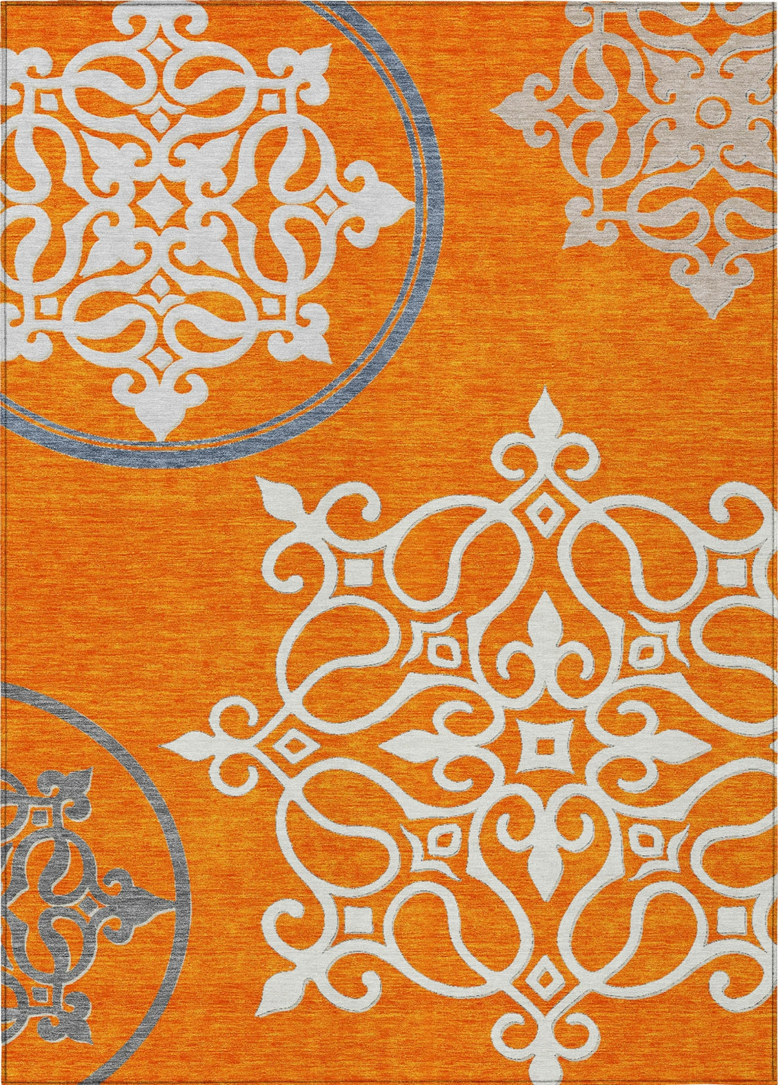 Piper Looms Chantille Scrolls ACN874 Orange Machine Washable Area Rug