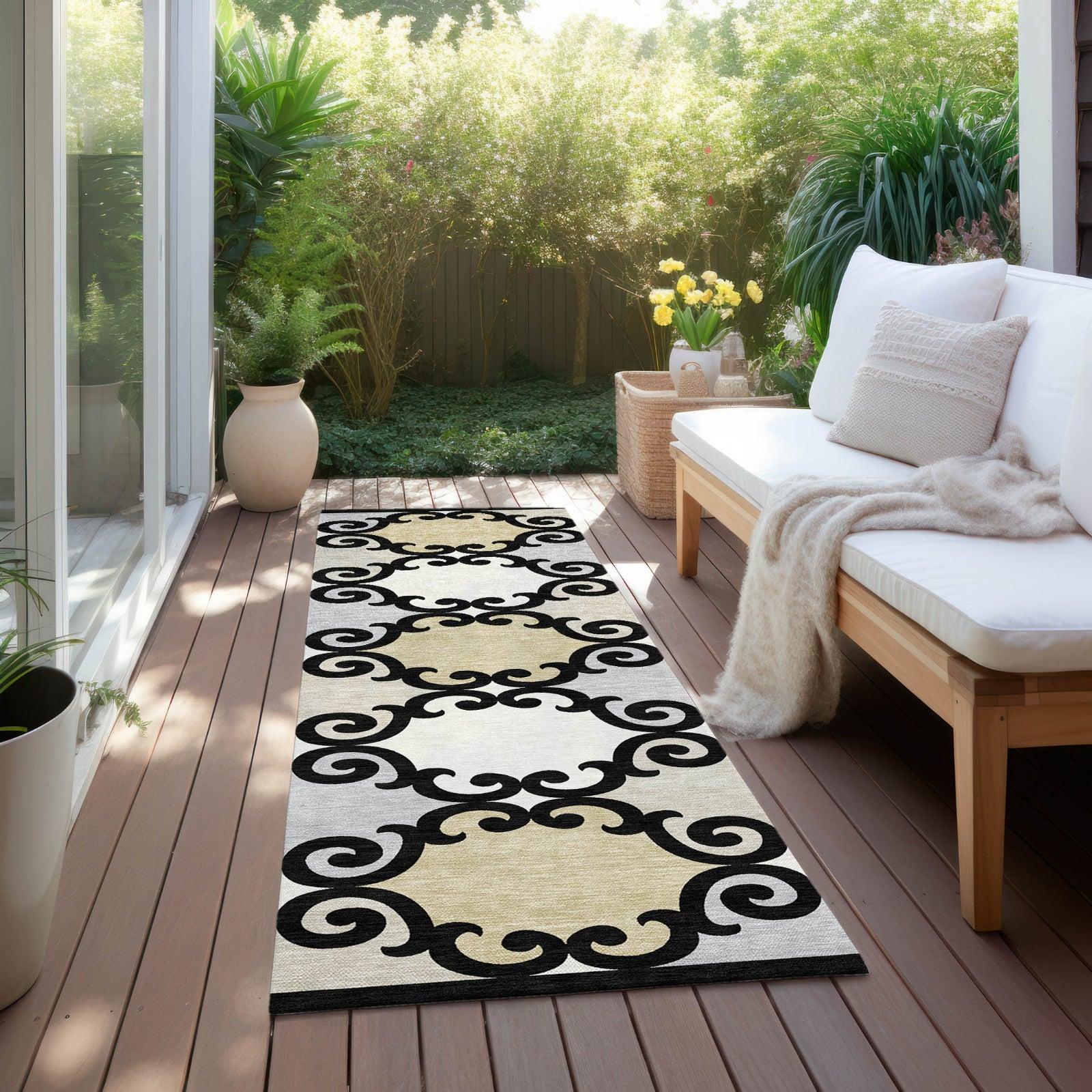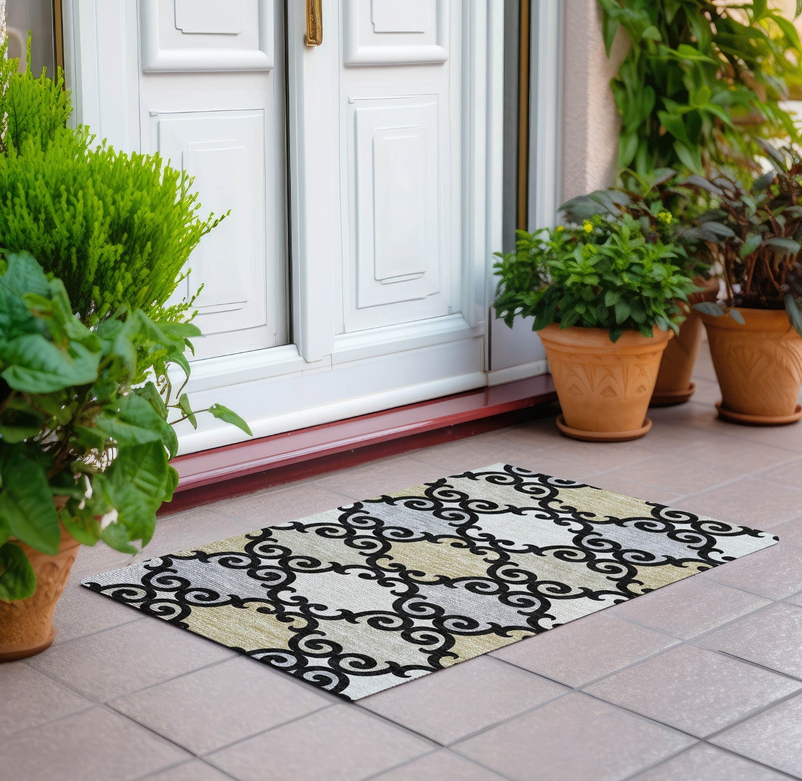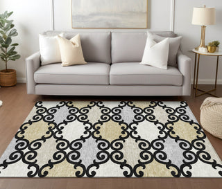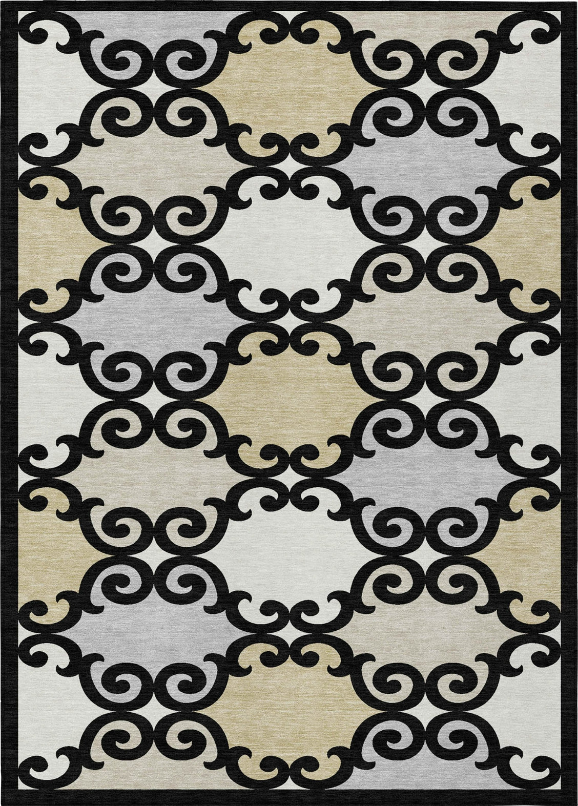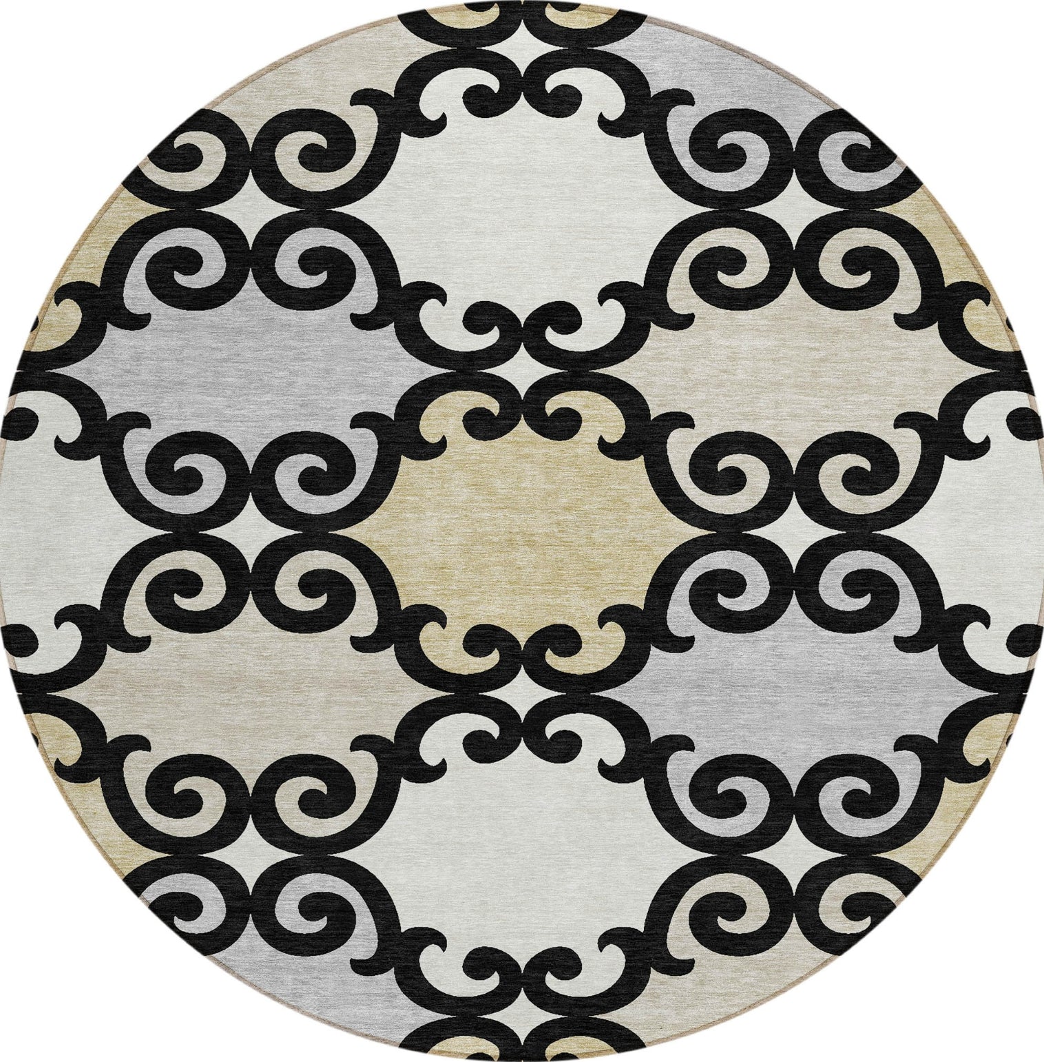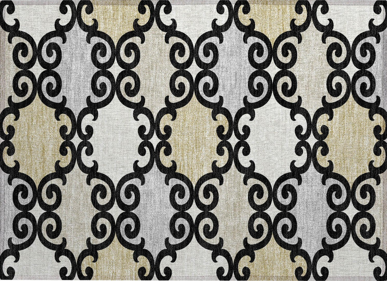 Piper Looms Chantille Scrolls ACN883 Black Machine Washable Area Rug