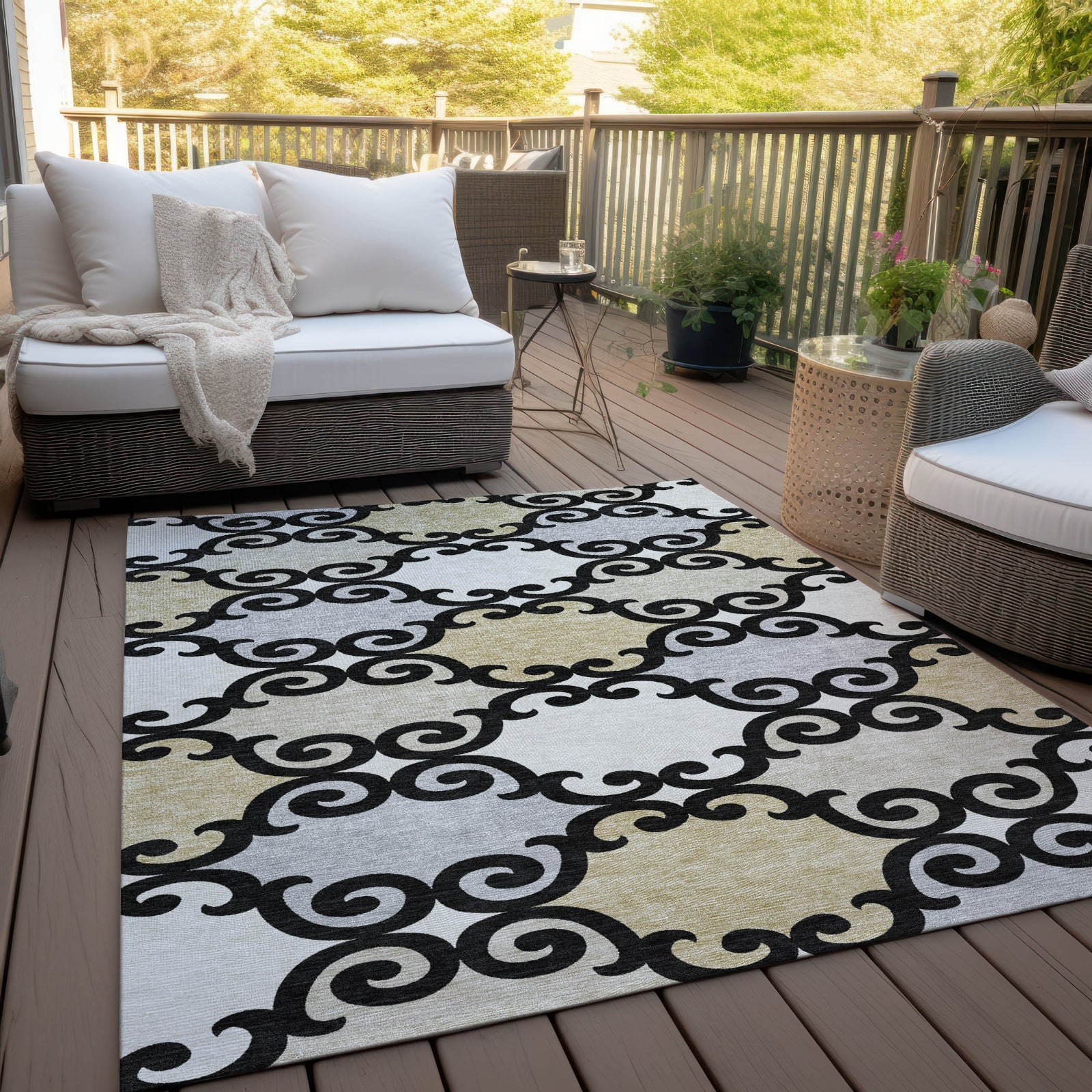 Immerse yourself in the luxury of our area rug, where large scrolls create a cohesive, transitional design. These scrolls add a classic yet modern flair to your home. UV stabilized for both indoor and outdoor usage, its ultra-thin structure and machine-washable feature make it a practical addition for homes with kids and pets.