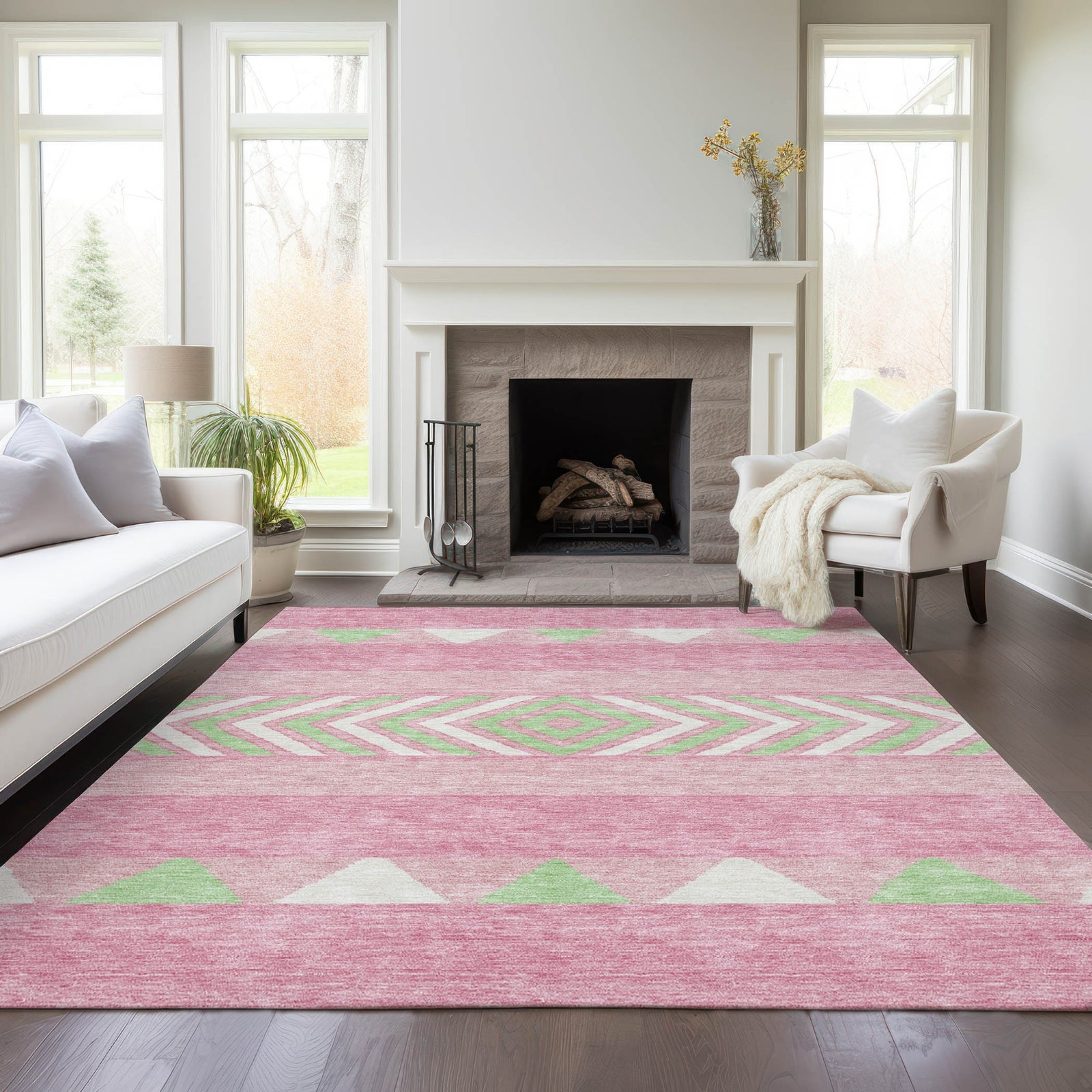 Piper Looms Chantille Southwest ACN965 Pink Machine Washable Area Rug