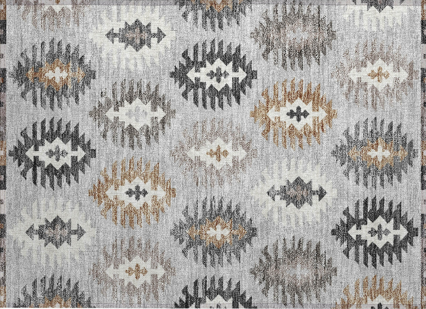 Let our area rug transform your home with its southwest overscaled motifs, encased by a quaint border for a transitional look. This piece is UV stabilized for longevity, has an ultra-thin profile for a modern touch, and is machine-washable, making it the go-to choice for a busy, pet-friendly household.