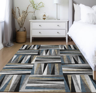 Our area rug boasts a unique square panel design, each panel enriched with two-toned arrow points, offering a striking transitional look. This sophisticated squares motif complements any living space, marrying well with both modern and traditional furnishings. It's UV stabilized to endure indoor and outdoor use, ultra-thin for easy integration into your home, and machine-washable, making it perfect for families with pets.