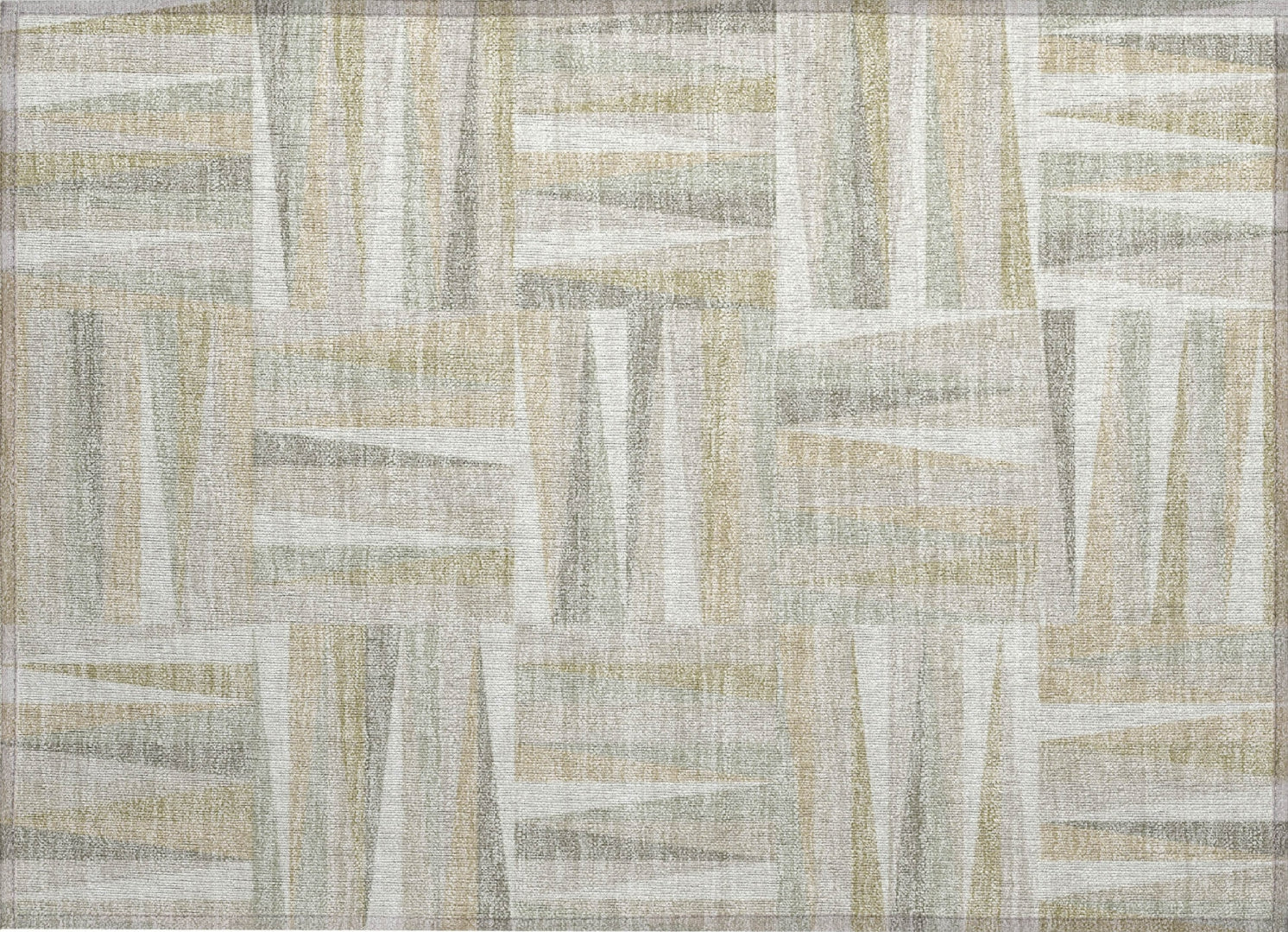 Our area rug boasts a unique square panel design, each panel enriched with two-toned arrow points, offering a striking transitional look. This sophisticated squares motif complements any living space, marrying well with both modern and traditional furnishings. It's UV stabilized to endure indoor and outdoor use, ultra-thin for easy integration into your home, and machine-washable, making it perfect for families with pets.