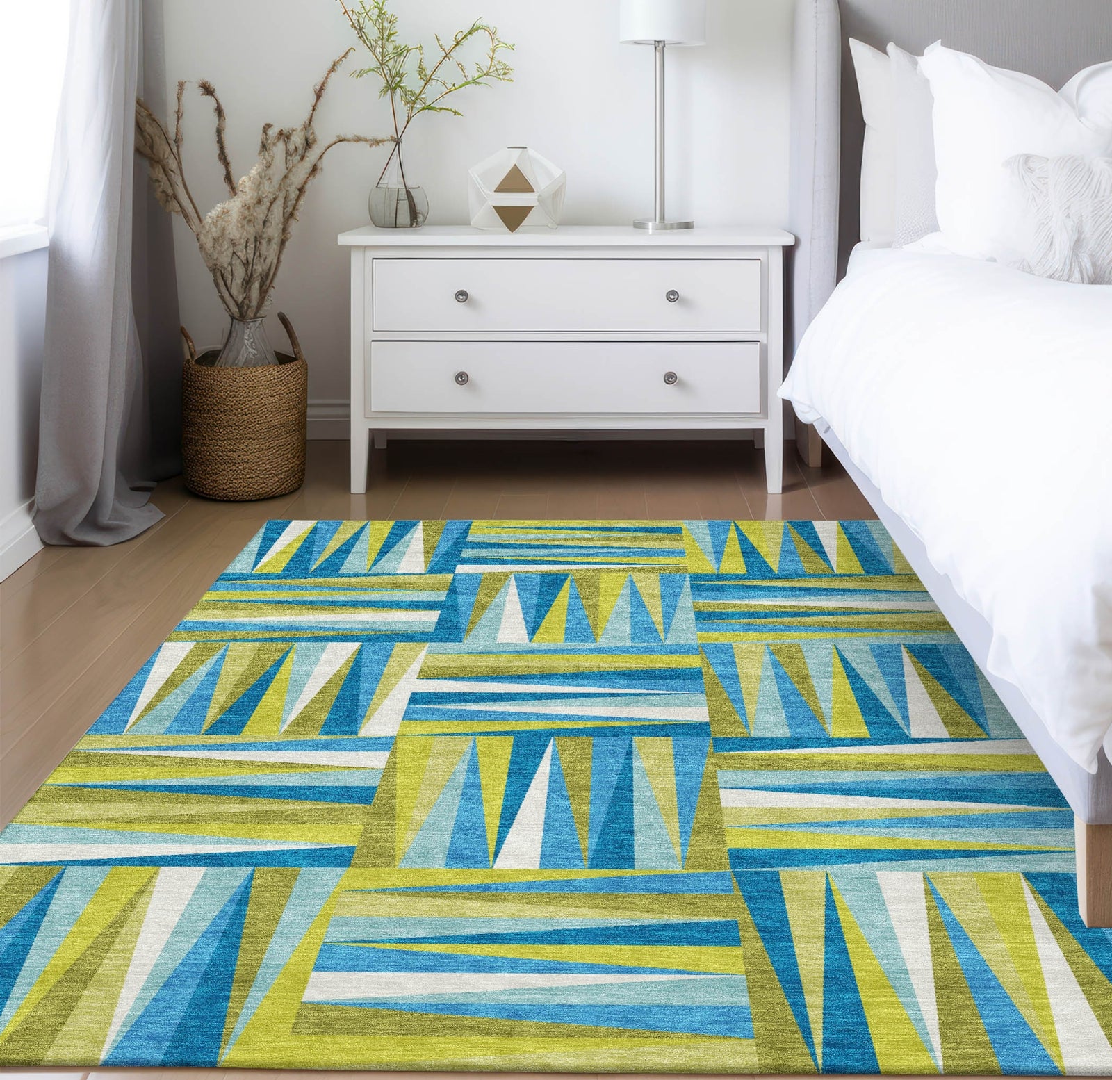 Piper Looms Chantille Squares ACN1012 Teal Machine Washable Area Rug