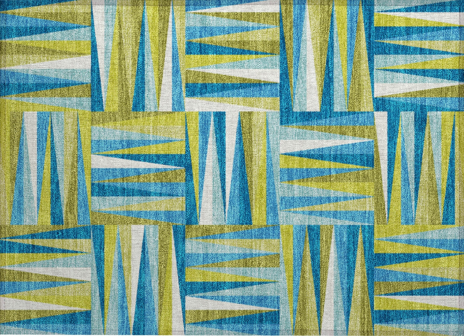 Our area rug boasts a unique square panel design, each panel enriched with two-toned arrow points, offering a striking transitional look. This sophisticated squares motif complements any living space, marrying well with both modern and traditional furnishings. It's UV stabilized to endure indoor and outdoor use, ultra-thin for easy integration into your home, and machine-washable, making it perfect for families with pets.