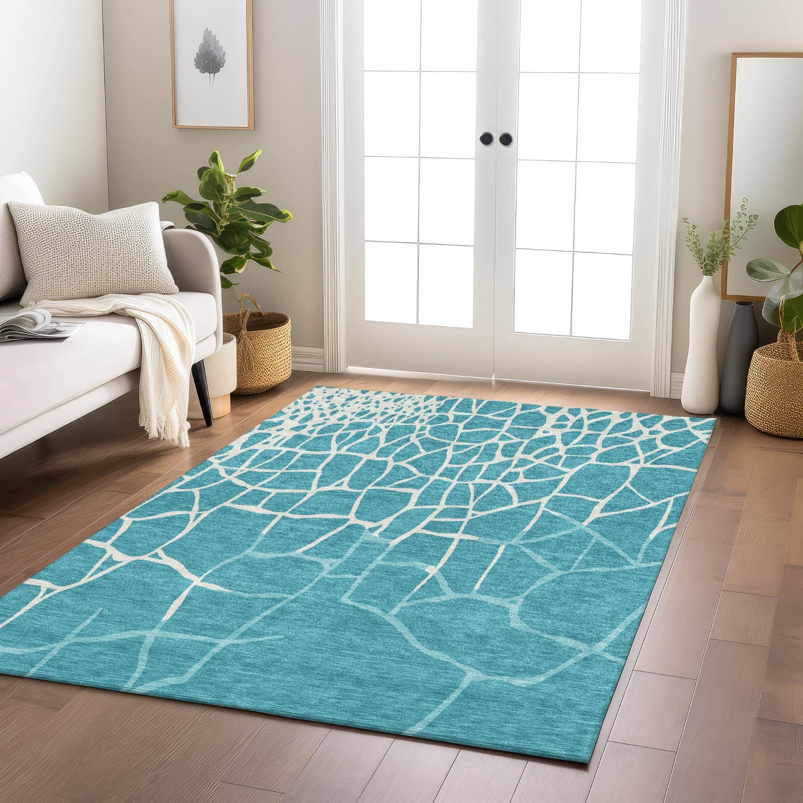 Piper Looms Chantille Squares ACN1049 Teal Machine Washable Area Rug