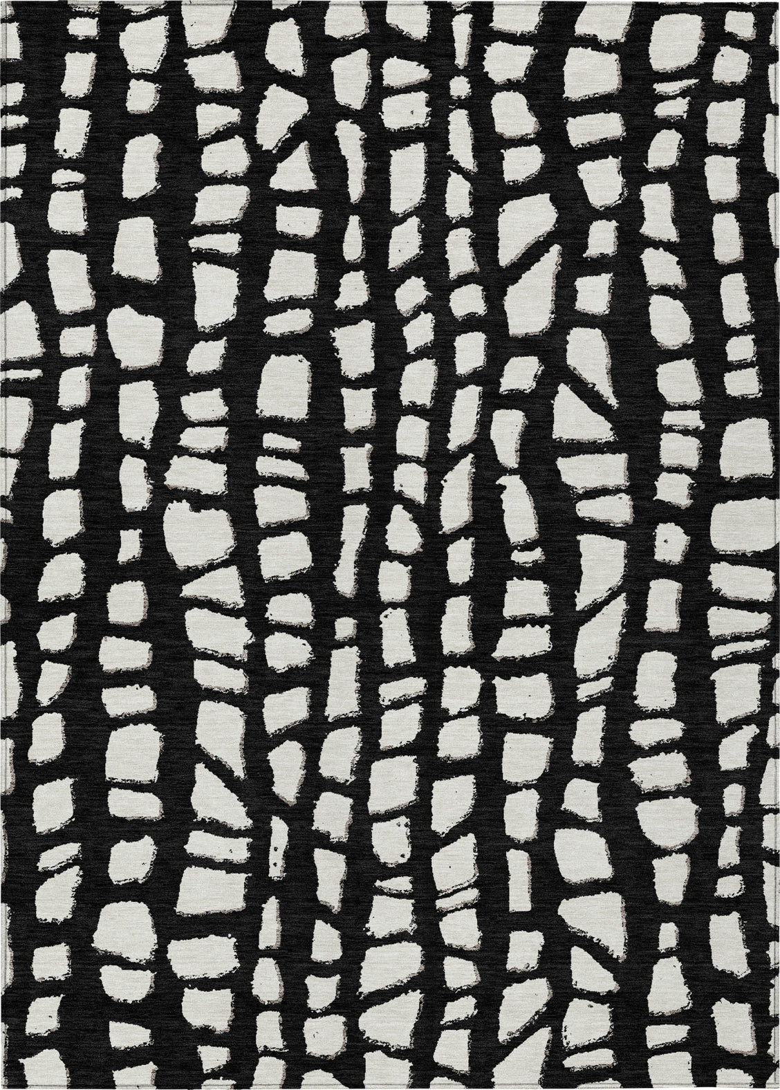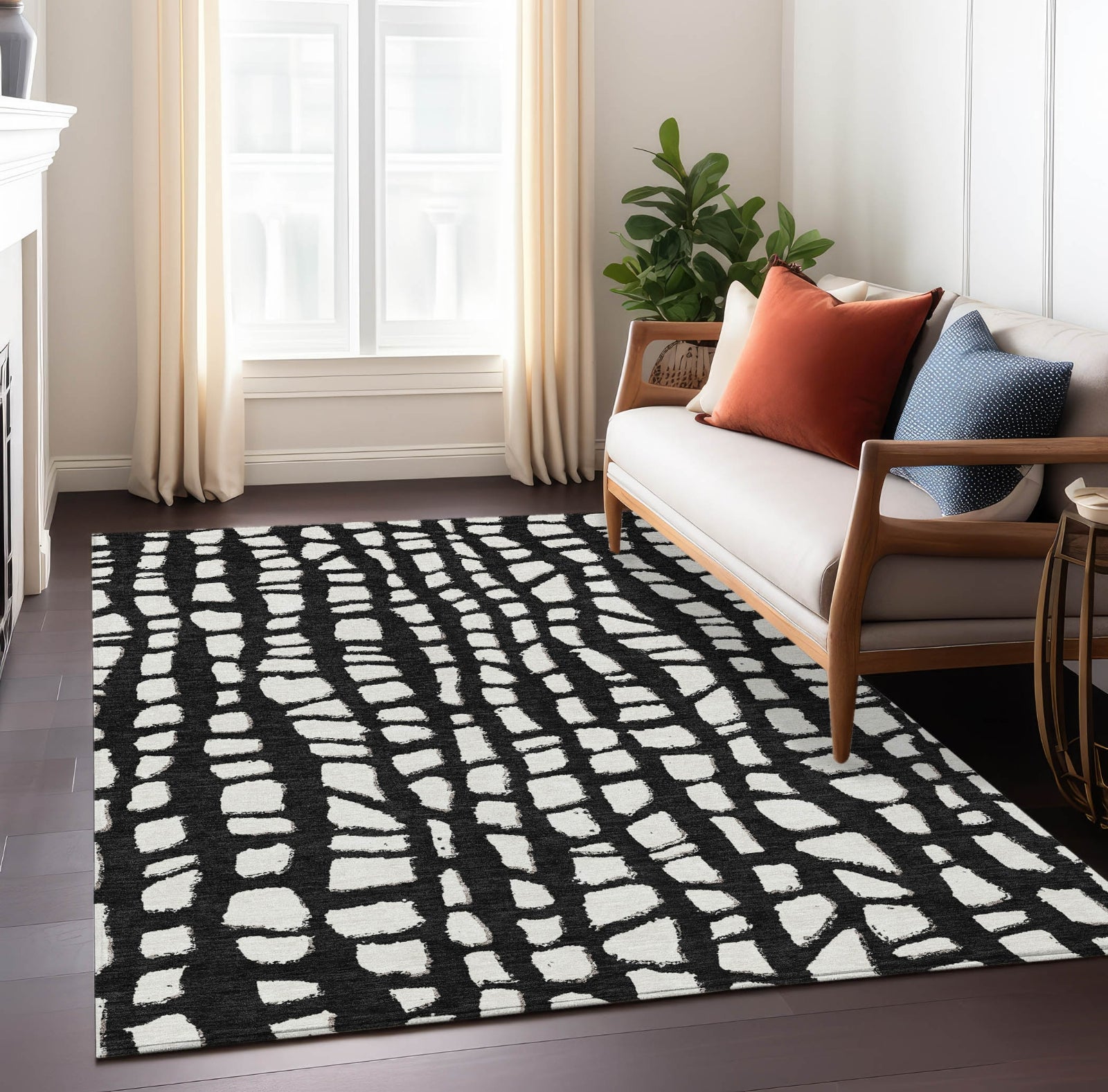Piper Looms Chantille Squares ACN754 Black Machine Washable Area Rug