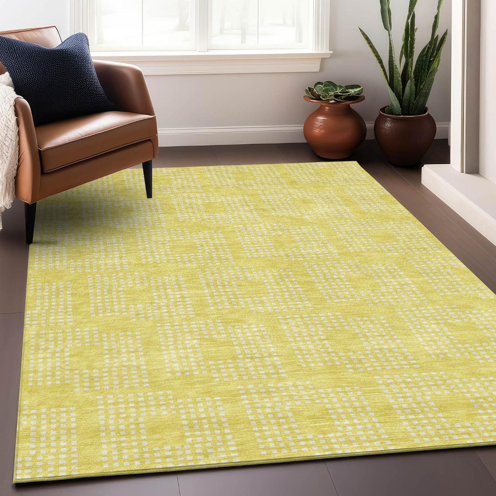 Piper Looms Chantille Squares ACN890 Yellow Machine Washable Area Rug