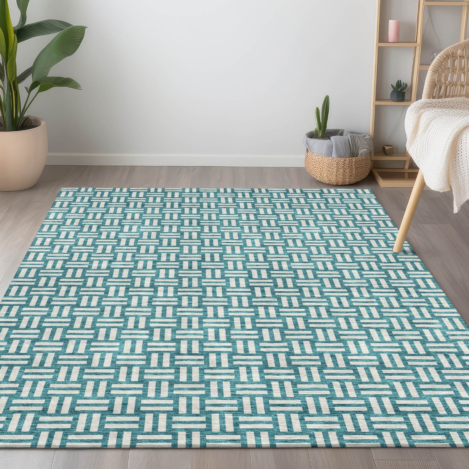 Piper Looms Chantille Squares ACN925 Teal Machine Washable Area Rug