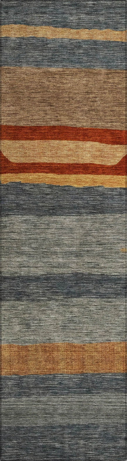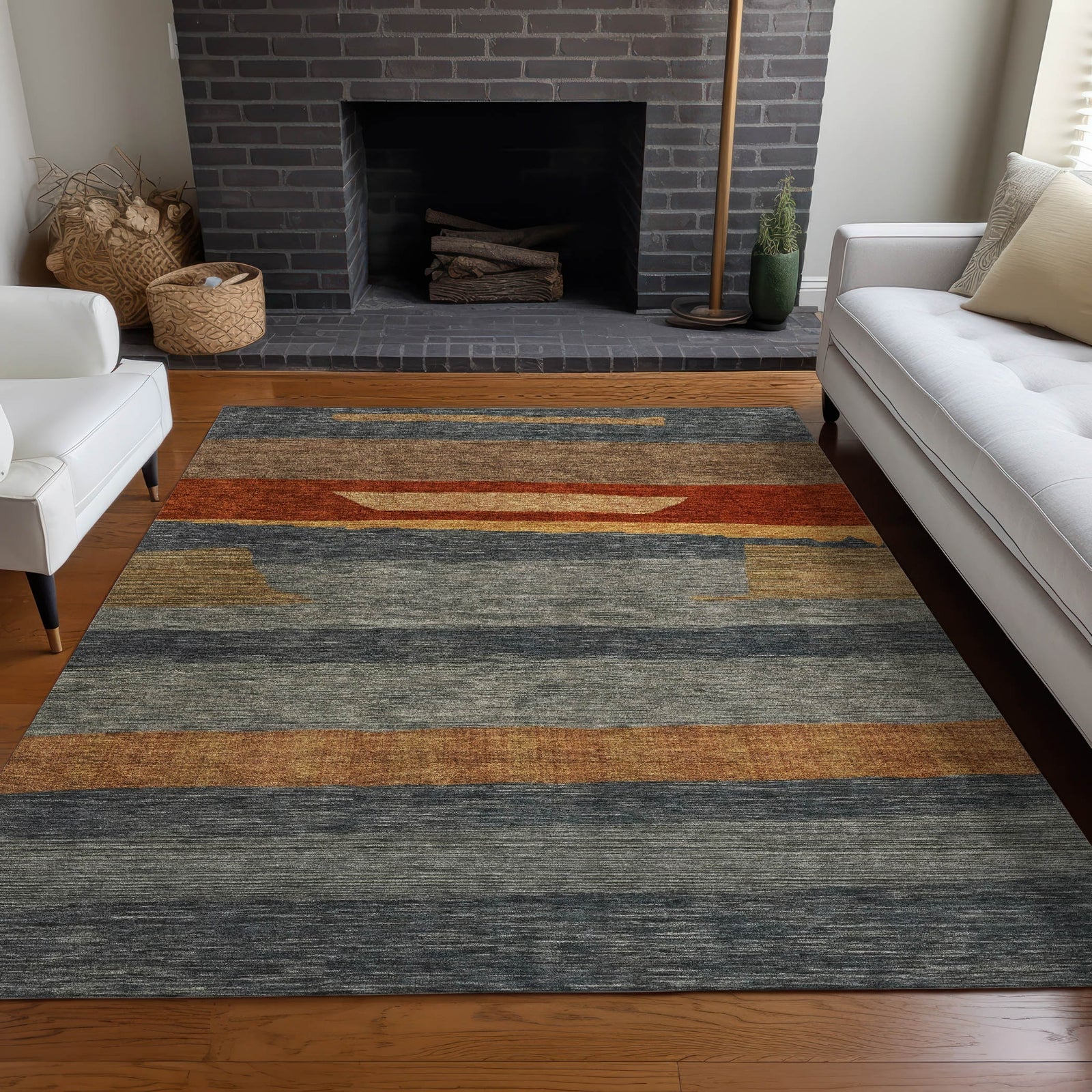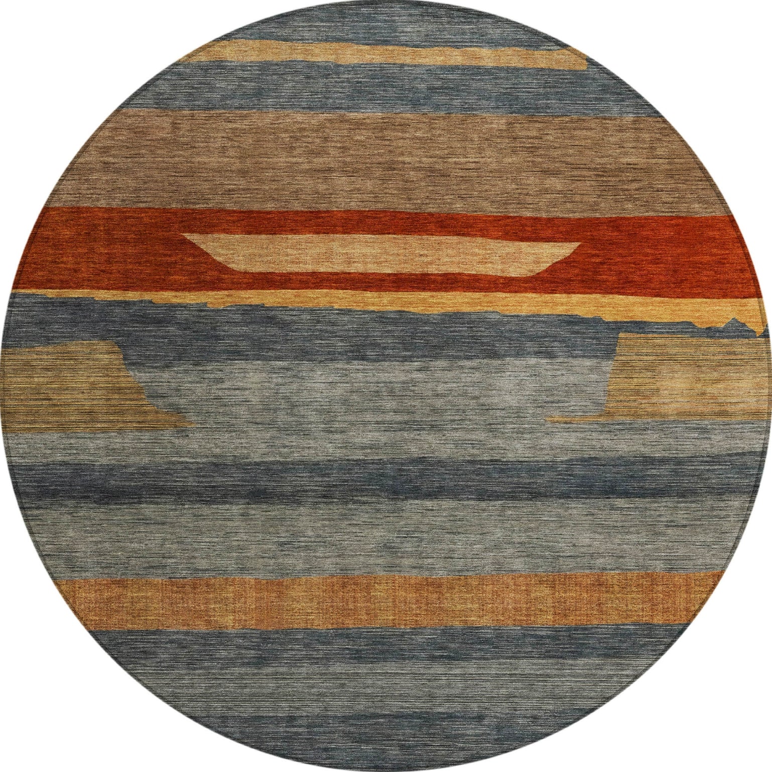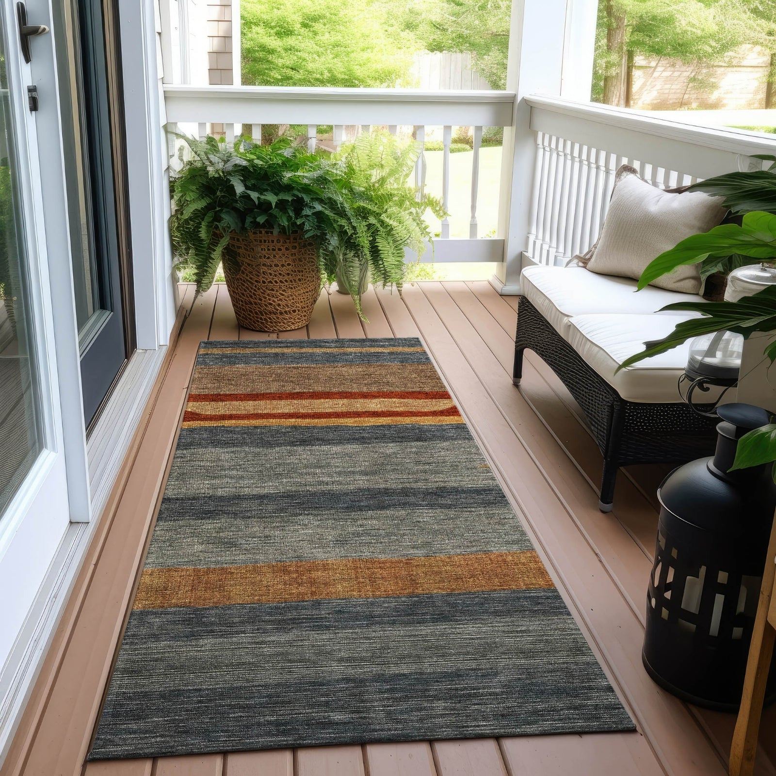 The modern stripes on this rug are complemented by a stria-textured background, which brings a tactile element to the design. The texture of the stria enhances the boldness of the stripes, adding layers of interest. Its transitional style and stripe pattern blend well with both contemporary and traditional decor. This UV-stabilized rug is designed for both indoor and outdoor use, with an ultra-thin construction that makes it easy to manage and maintain. Machine-washable for convenience, it's also family and pet-friendly, ensuring it holds up to daily traffic and activity. Bring effortless style and durability to your space with this versatile rug.