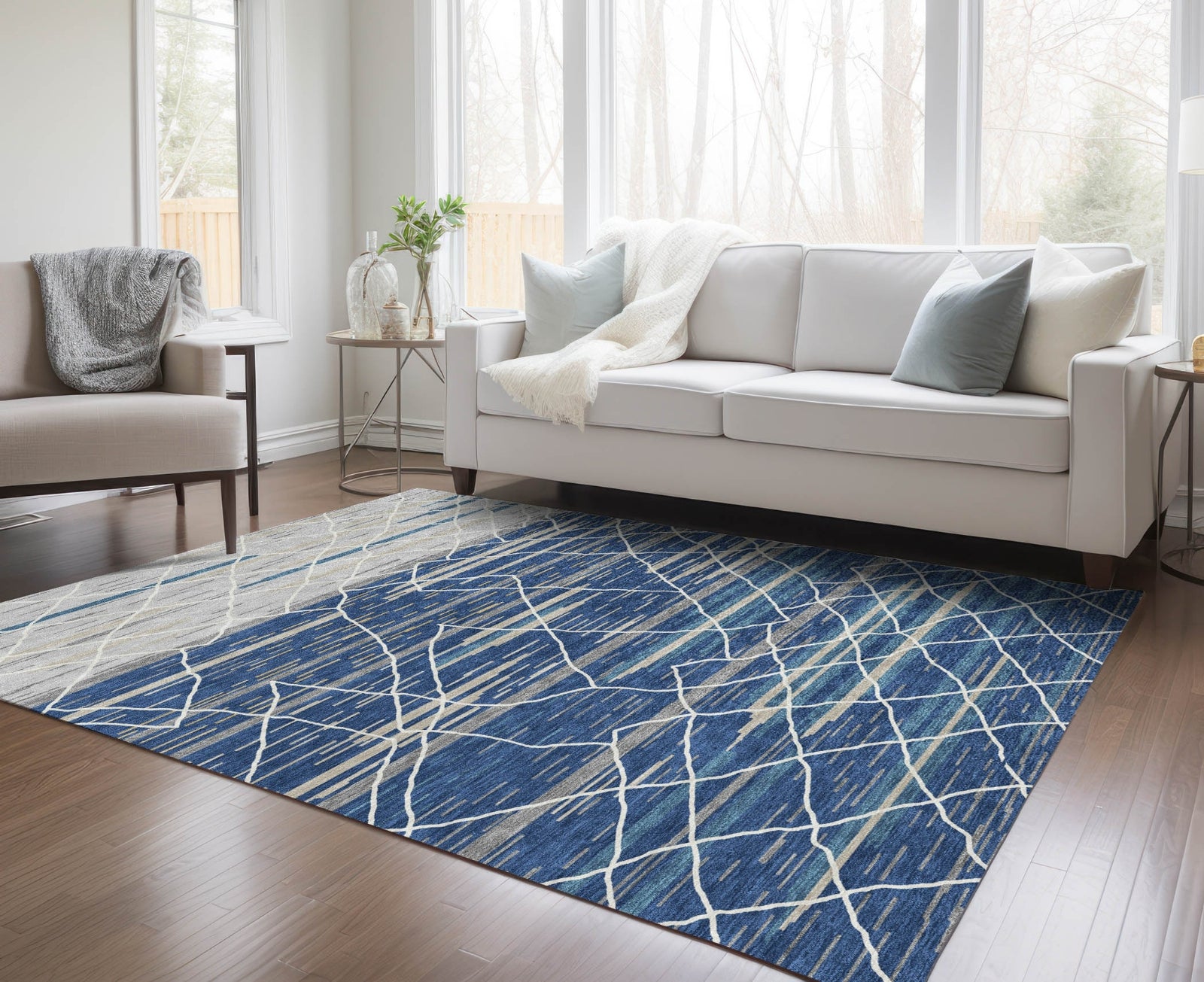 Piper Looms Chantille Stripes ACN1025 Navy Machine Washable Area Rug