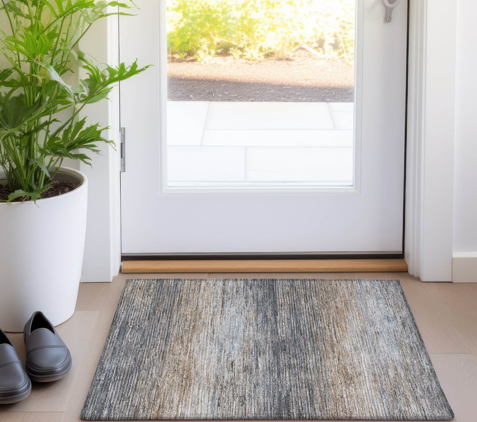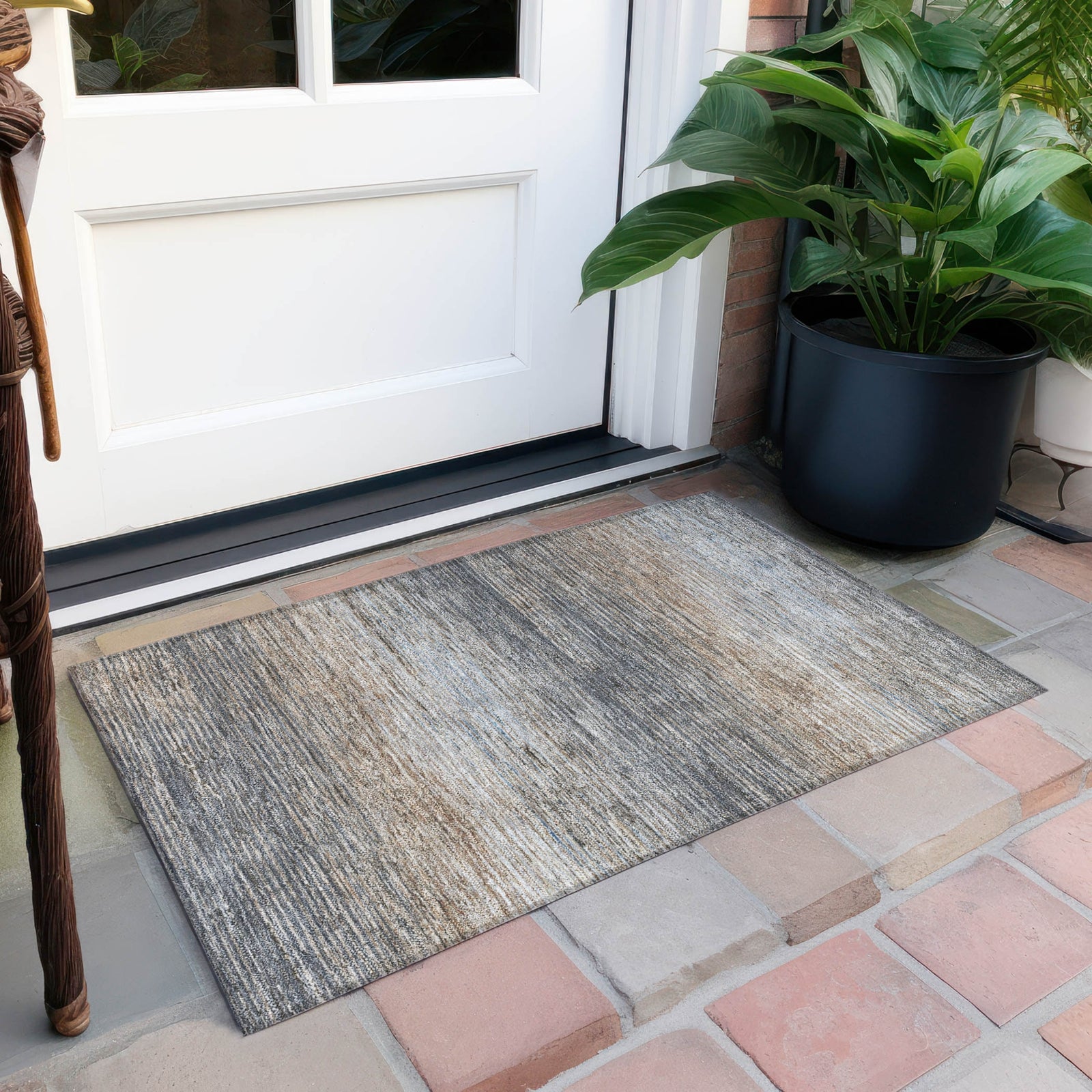 A stylish design of thin horizontal stripes with broken areas makes this rug a perfect fit for transitional spaces. The stripe pattern elevates its style, making it a versatile addition to any room. UV-stabilized for both indoor and outdoor use, it is designed for durability. The ultra-thin construction allows for easy placement and maintenance, and it is machine-washable for effortless care. Family and pet friendly, this rug combines style and functionality seamlessly.