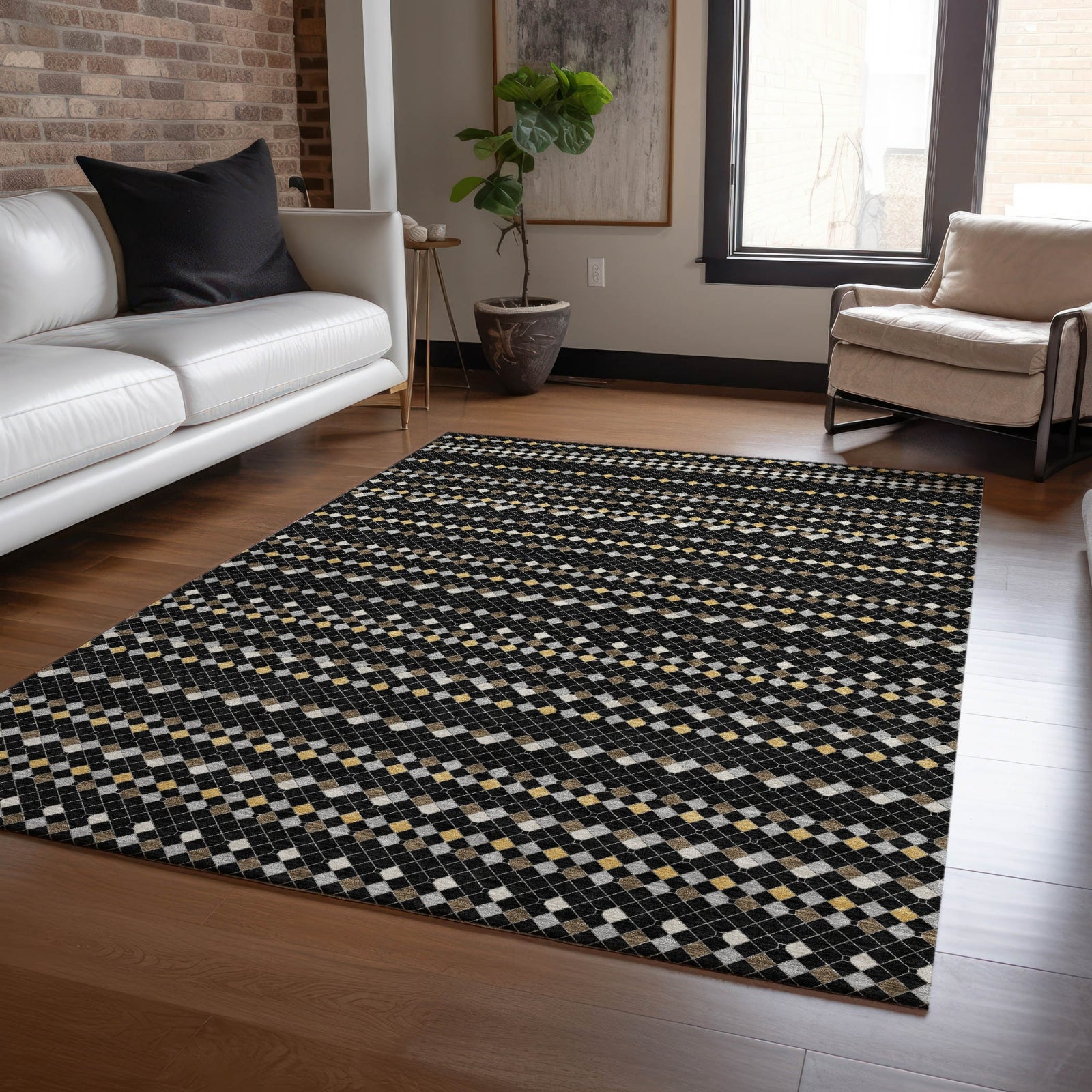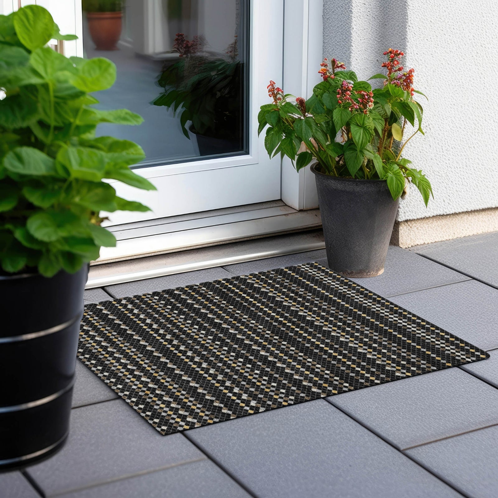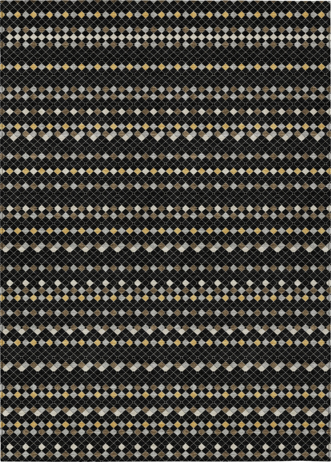 Add a dynamic touch to your home with the small diamonds forming a horizontal stripe in this transitional rug. The striped pattern brings a lively and creative element to any room. UV stabilized for indoor or outdoor use, it boasts an ultra-thin construction. This machine-washable rug is family and pet-friendly, making it an easy-care option for busy homes.