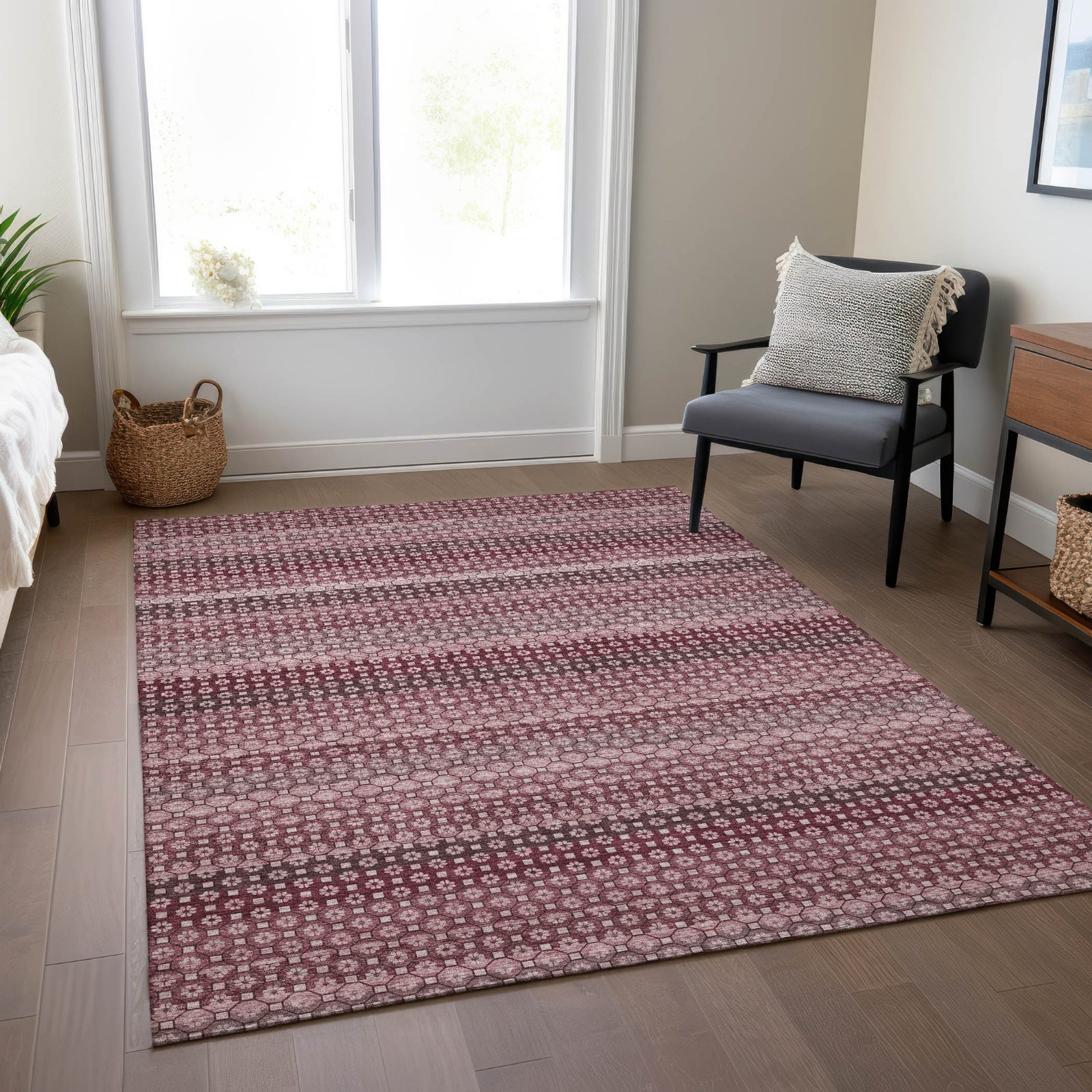 Piper Looms Chantille Stripes ACN1421 Garnet Machine Washable Area Rug