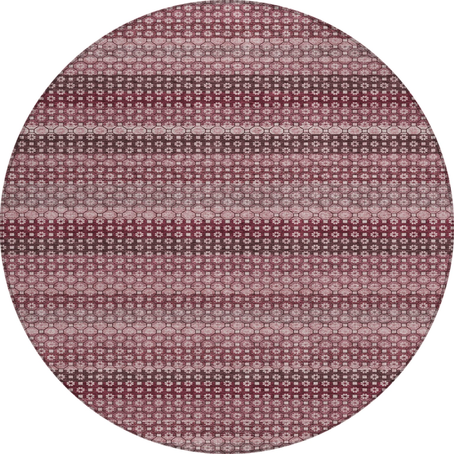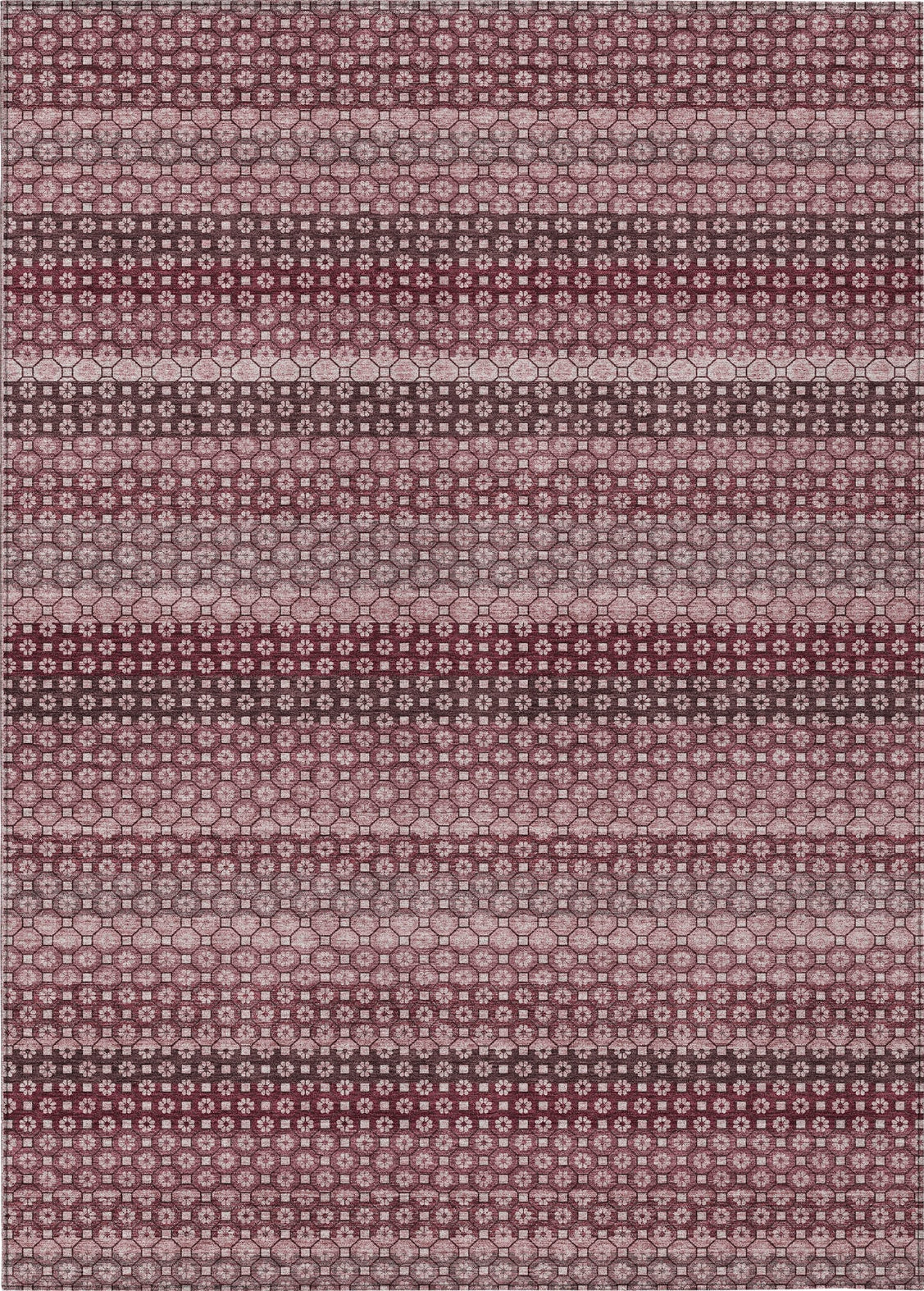 Transform your home with the contemporary look of small circles creating a horizontal stripe in this transitional rug. The striped pattern enhances any room with its artistic flair. UV stabilized for versatile use, it has an ultra-thin construction. This machine-washable rug is family and pet-friendly, ensuring both beauty and practicality.