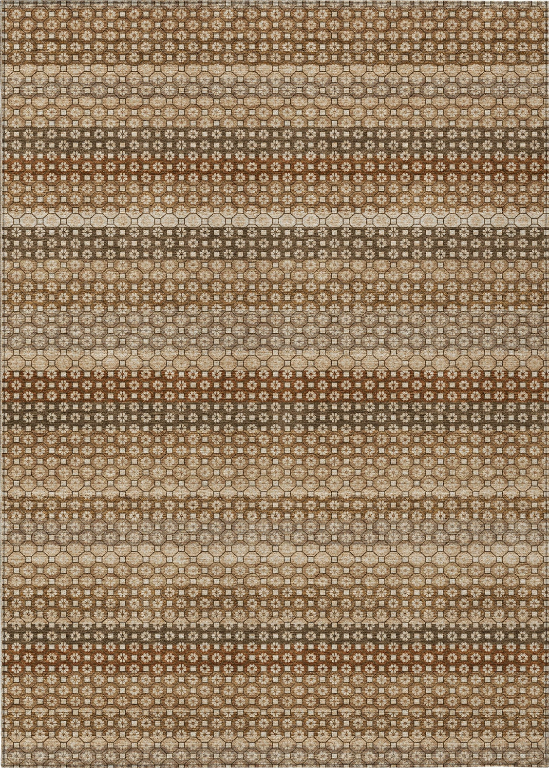 Transform your home with the contemporary look of small circles creating a horizontal stripe in this transitional rug. The striped pattern enhances any room with its artistic flair. UV stabilized for versatile use, it has an ultra-thin construction. This machine-washable rug is family and pet-friendly, ensuring both beauty and practicality.
