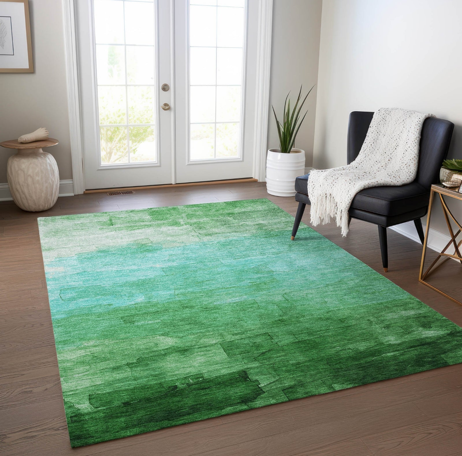 Piper Looms Chantille Stripes ACN1467 Green Machine Washable Area Rug