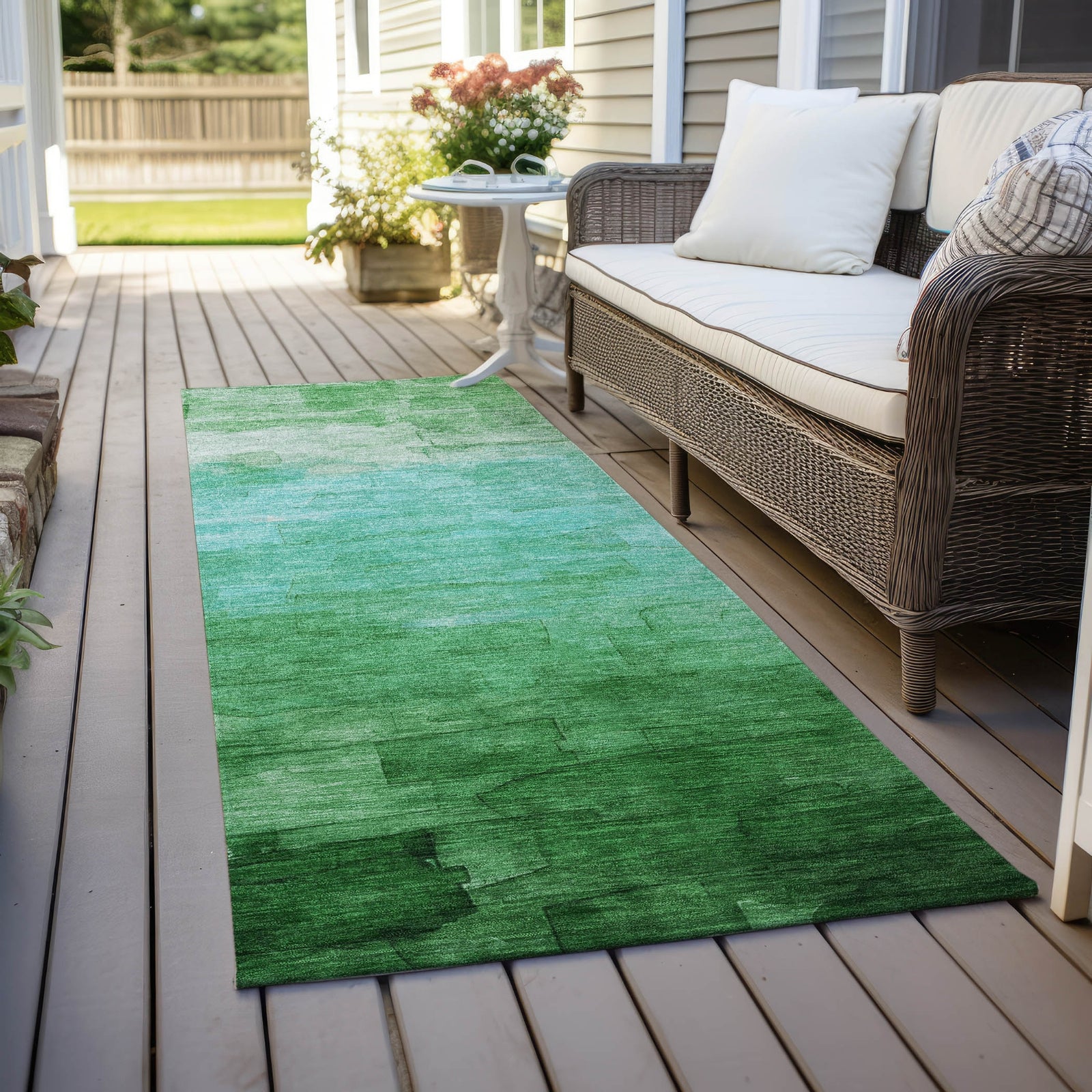 - UV Stabilized For Indoor or Outdoor Use. All rugs exposed to long periods of intense and direct sunlight can experience loss of color over time. Our rugs perform best in covered outdoor areas and uncovered areas with lower hours of direct sunlight.
