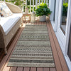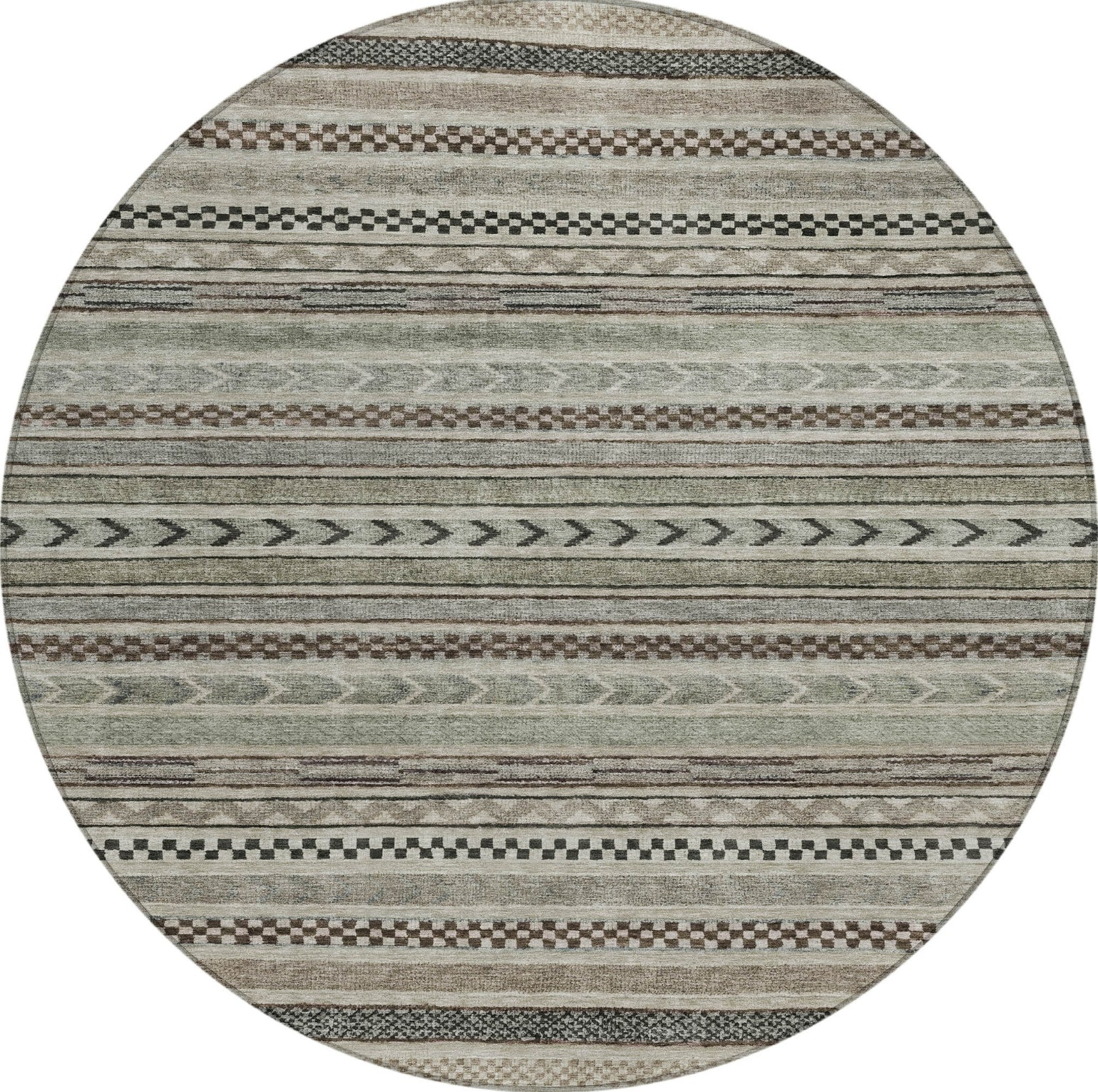 The small stripes featuring various motifs in horizontal patterns give this transitional rug a textured and layered look that's both stylish and versatile. The stripe pattern adds a subtle yet dynamic design element that complements a wide range of decor styles. UV stabilized for lasting beauty, this rug is suitable for both indoor and outdoor use. Its ultra-thin construction ensures a smooth fit under furniture, and it's conveniently machine-washable. Designed for family and pet-friendly environments, this rug combines practicality with aesthetic appeal.